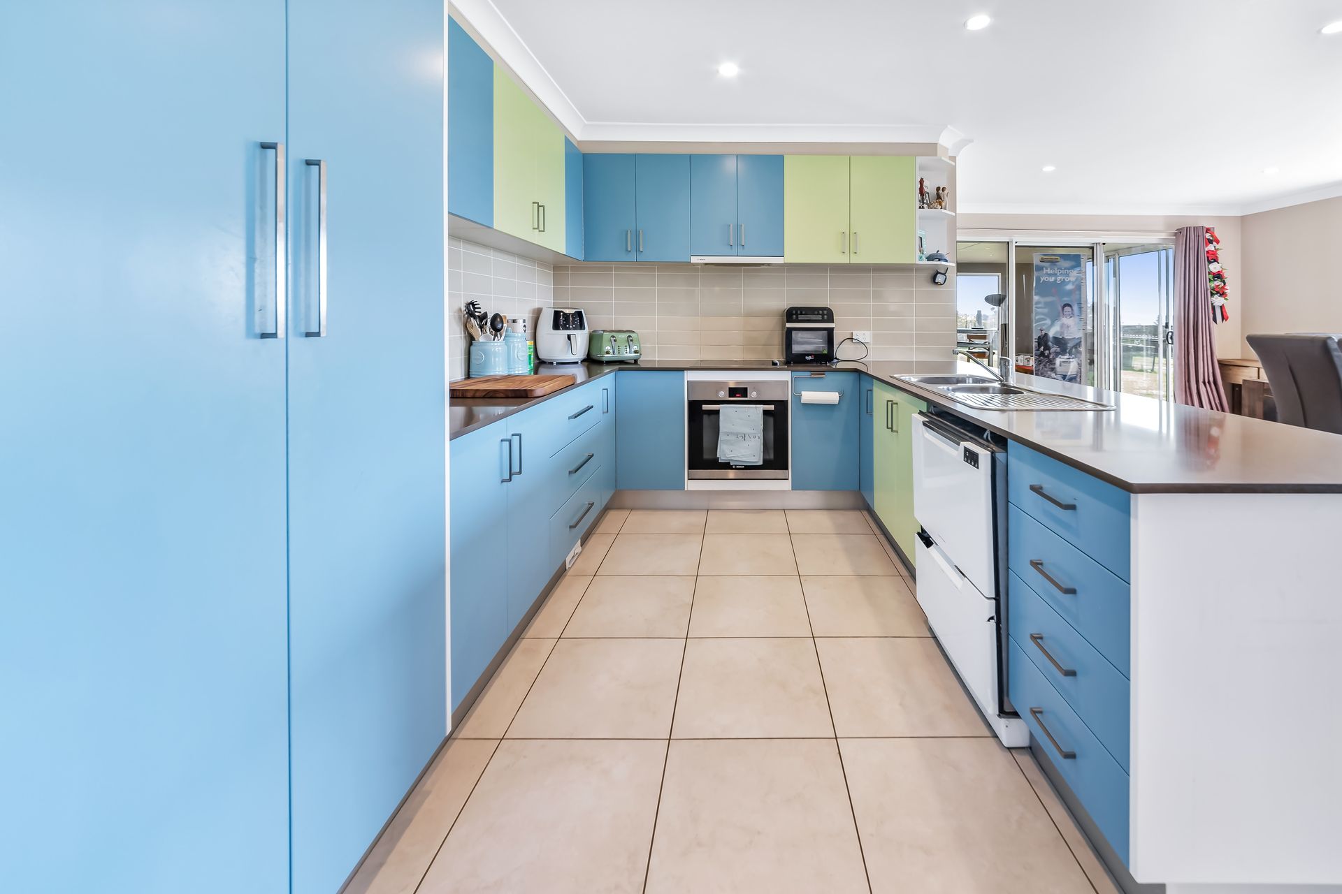 -76.57m2 north-facing open plan main living area that includes a modern fully equipped kitchen, dining/area, & study nook