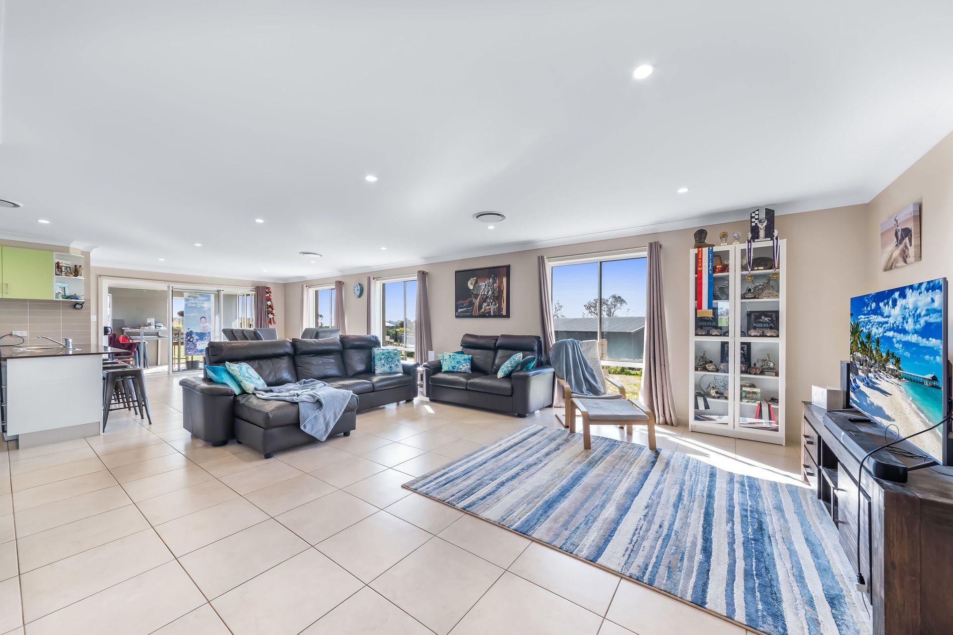 Firstly, the modern 252m2 5 bedroom home comes with a family floorplan which includes a large 77m2 north-facing open plan kitchen, living and dining living area that links to a fully enclosed 18m2 alfresco area and BBQ awning. The home also has an 18m2 rumpus room, study nook/office and very nice appointments.
