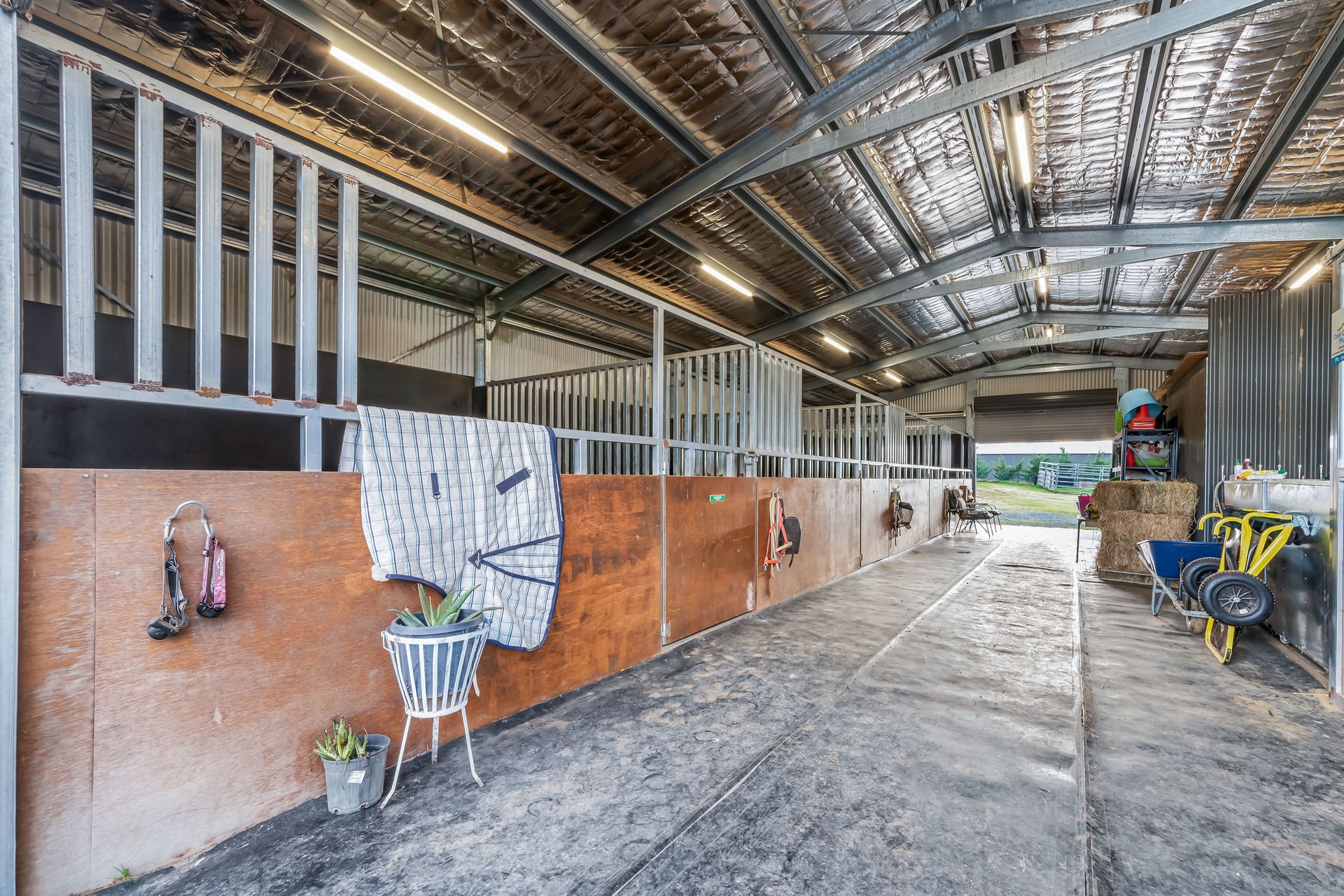 •Converted container housing as stables with steel day yards, tack room, wash bay