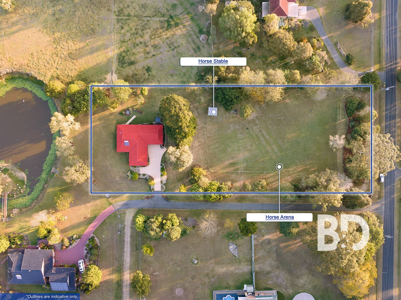 • 2,500m2 / 0.6 acre horse paddock with wash bay & stable
