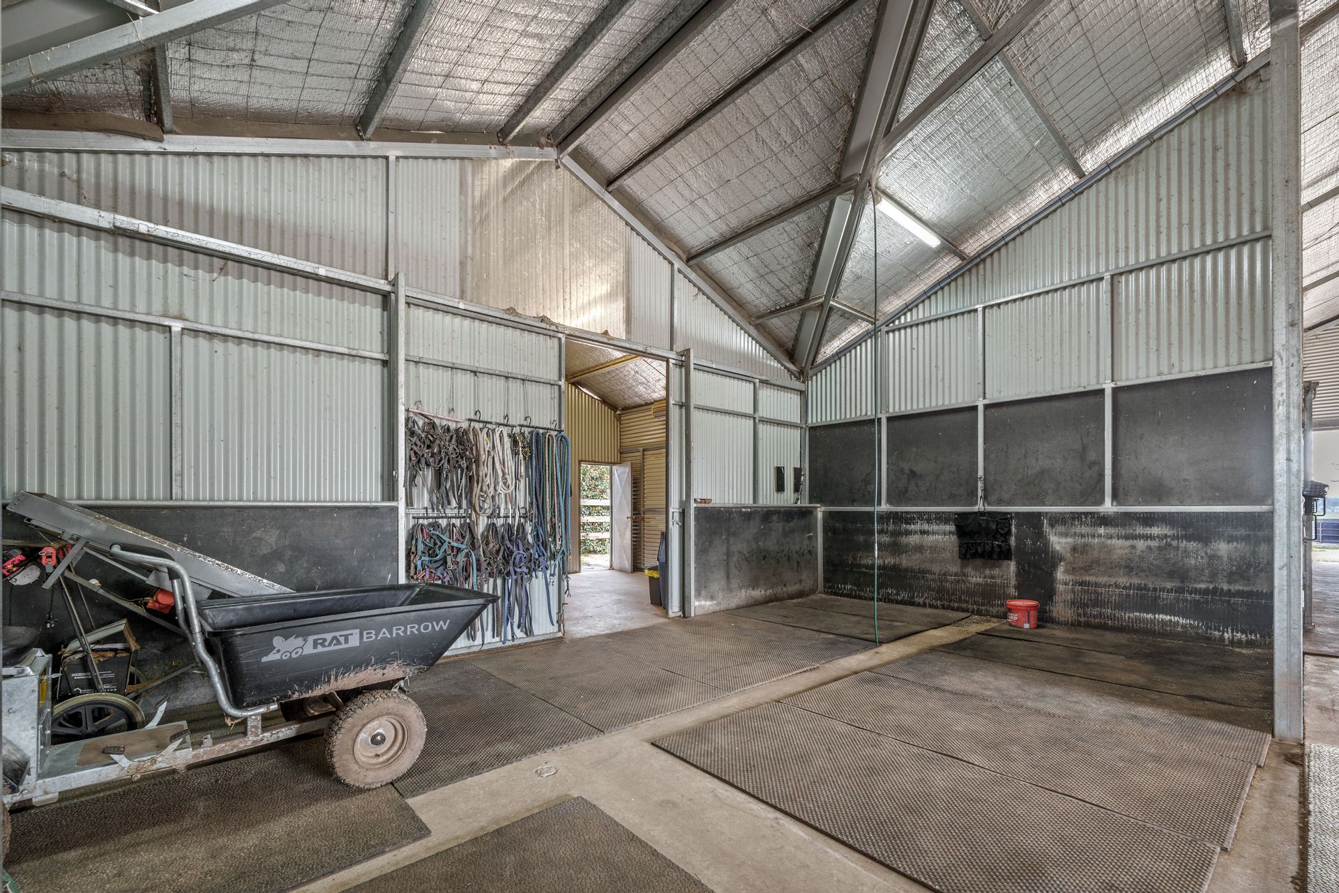Main barn 12 rubber floor stables + staff room + tack room + mare & foal crush + scoping crush + CCTV + 5KW solar, 9 steel vet yards, 8 sheltered day yards, round yard, 8 horse walker, 8 horserail day paddocks, foaling hut and floodlit yards with CCTV. 56 paddocks, various sizes. As new double fencing + catching yards.