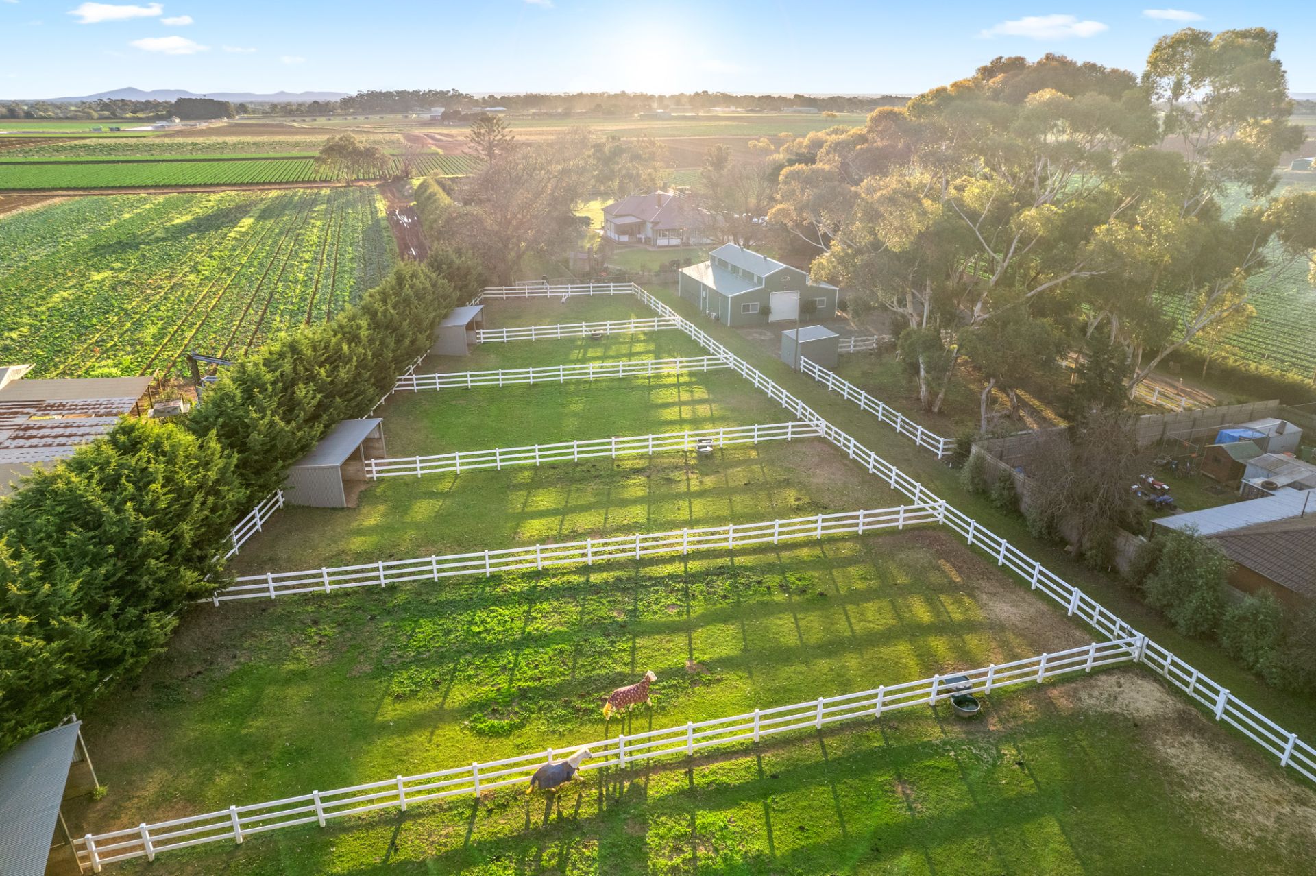 8 x horse paddocks with automatic water troughs and shelters.