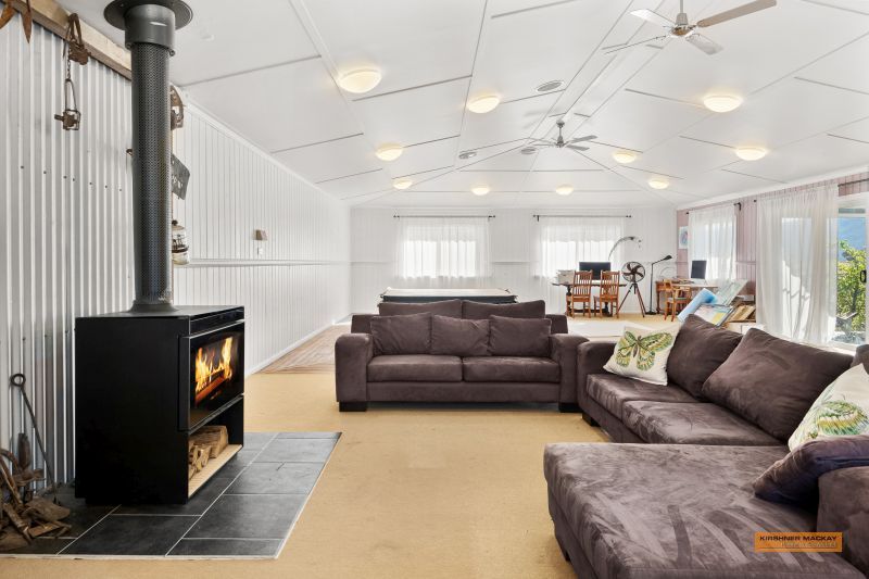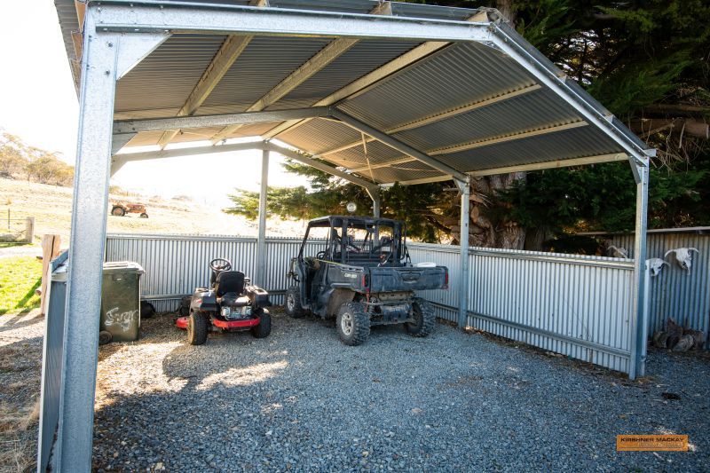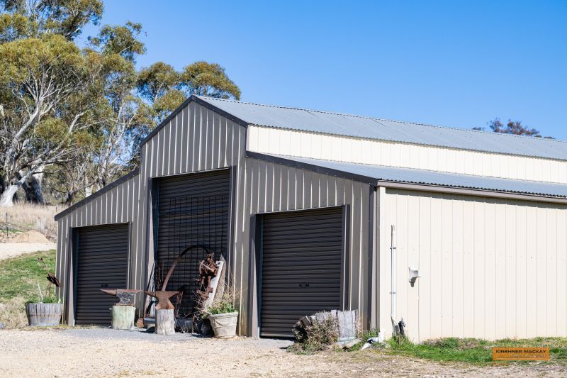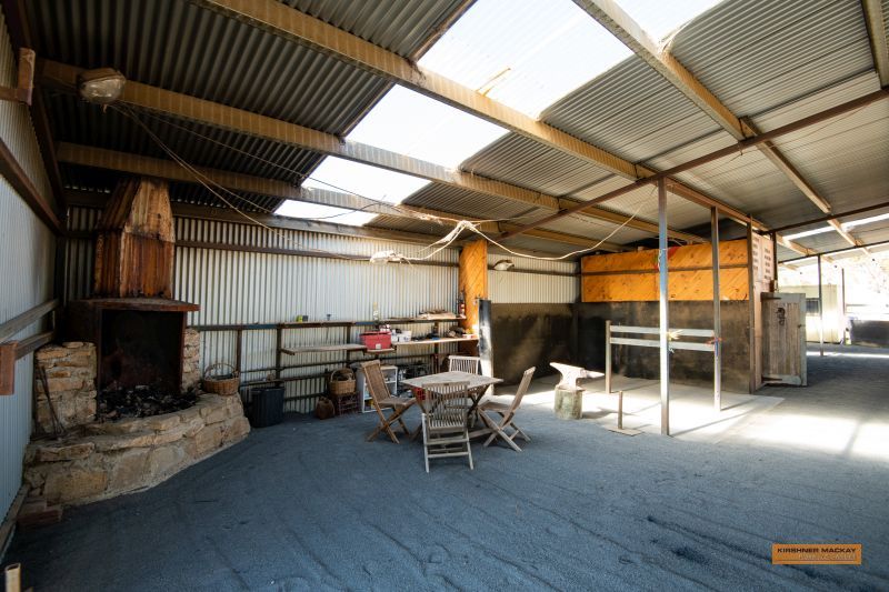 Two chook pens, orchard, woodshed, carport, large 3 bay shed or workshop, cool room.