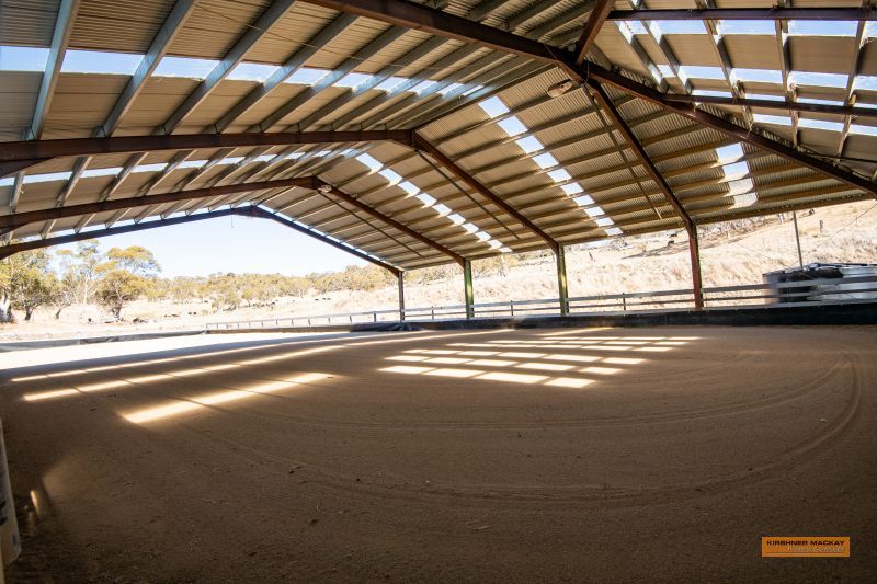 60m x 20m riding arena partly covered, undercover farriers bay, tack room, feed room, wash down bay all with power and lights including arena.