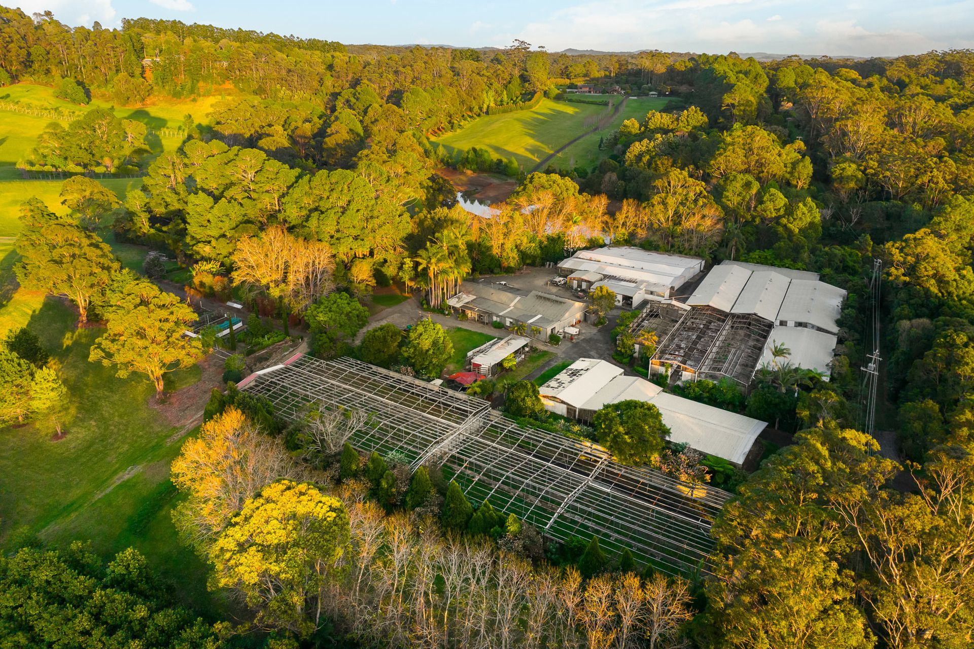 In addition to the cottage, the property features an array of extensive farm equipment, allowing for efficient and well-maintained operations. A large lake, stocked with thousands of bass and silver perch, not only enhances the scenic beauty but also offers opportunities for boating and recreation. The property further includes a 256 sqm shed, thoughtfully designed with office space and a lunchroom. This versatile space adds functionality and convenience to the overall infrastructure. Additionally, a covered nursery ensures protected cultivation, contributing to the flourishing greenery and horticultural activities on the estate.