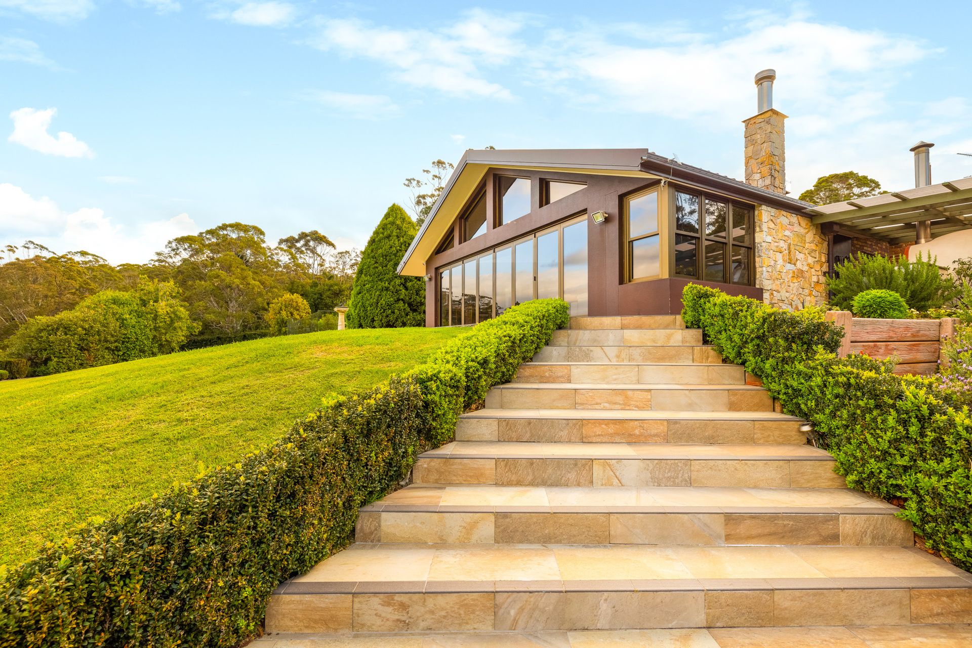This fully self-contained area features its own well-equipped kitchen, a comfortable living room with air conditioning, and an inviting outdoor area for unwinding and enjoying the surroundings. The expansive full-length back deck provides an idyllic spot to savour the breathtaking views overlooking the entire Eaglemont Estate.