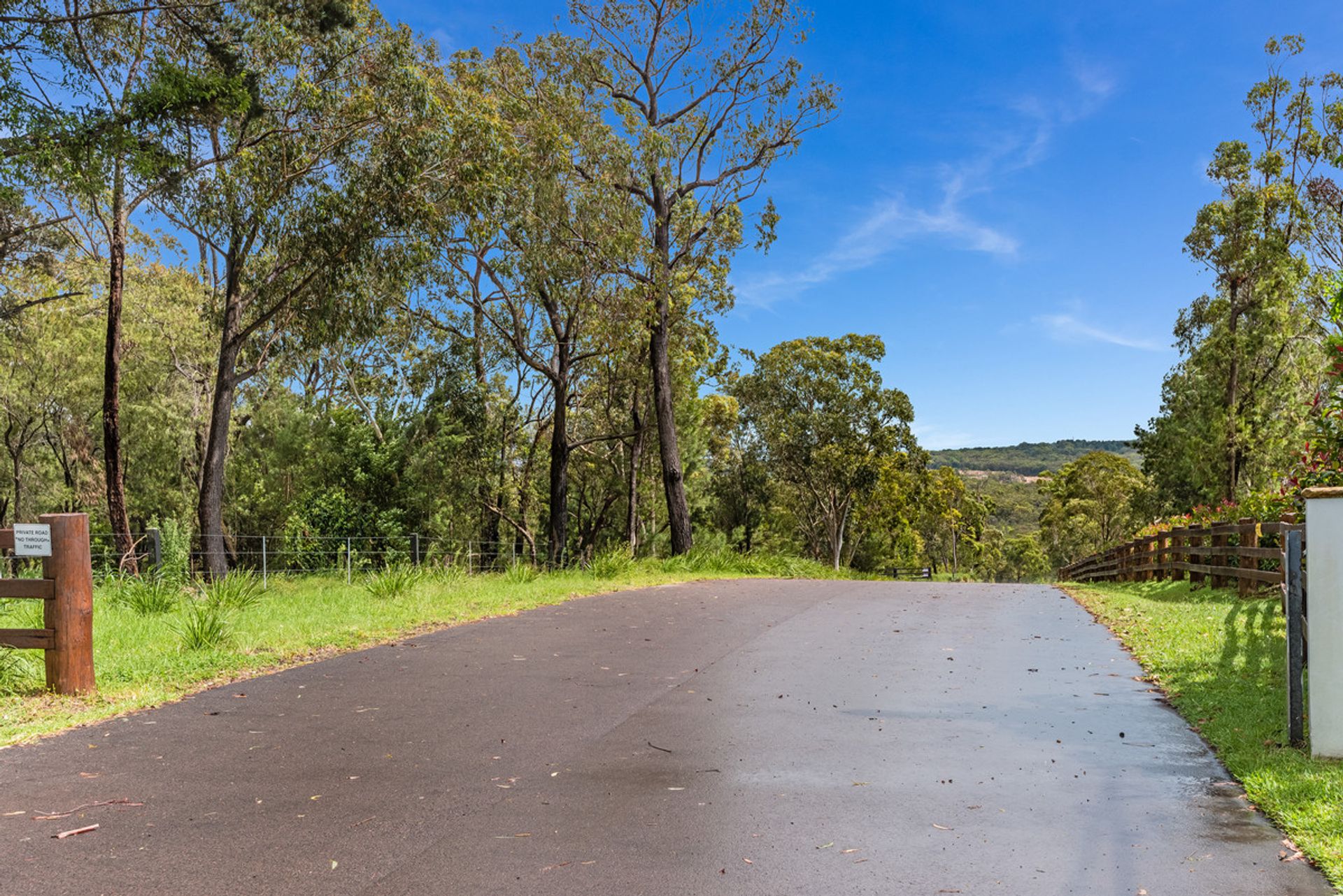 There are two entrances to the property, each along newly surfaced private roads.