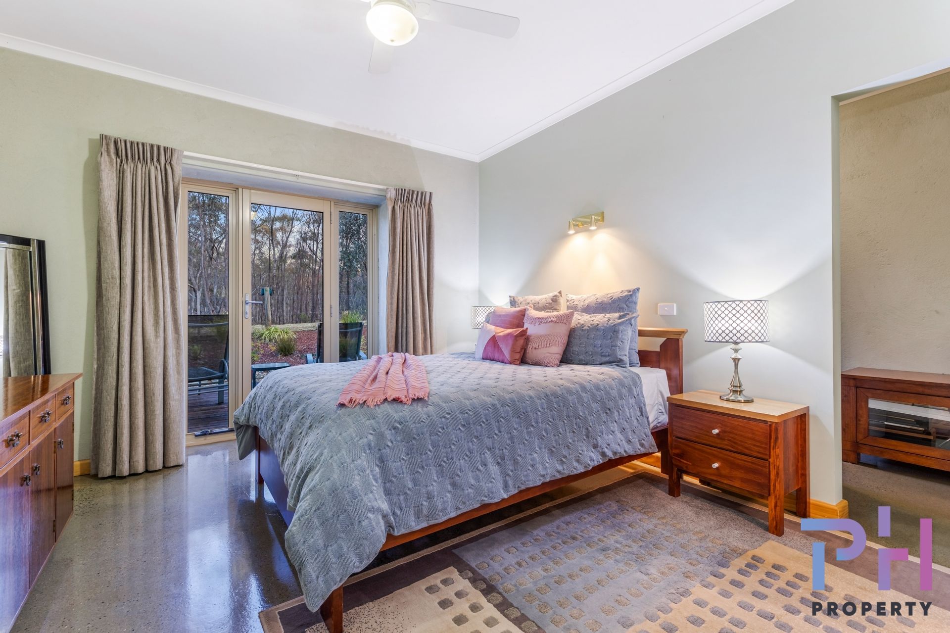 There are three bedrooms, the huge master suite comprises polished concrete floors, a walk-behind-robe, dual access to the bathroom and external access to its own Merbau deck - a beautiful place to sit and relax; bedroom two is carpeted and features a wall of robes and a ceiling fan and the third bedroom is complete with a built-in-robe, polished concrete floor and is currently used as an office. The family bathroom is spacious, it boasts a shower, bath, basin and a large vanity, the floors are also polished concrete. There's a separate powder room and a second toilet. The laundry features good storage including a large double cupboard as well as underneath cupboards and a good-sized benchtop with space underneath for your washer and dryer.