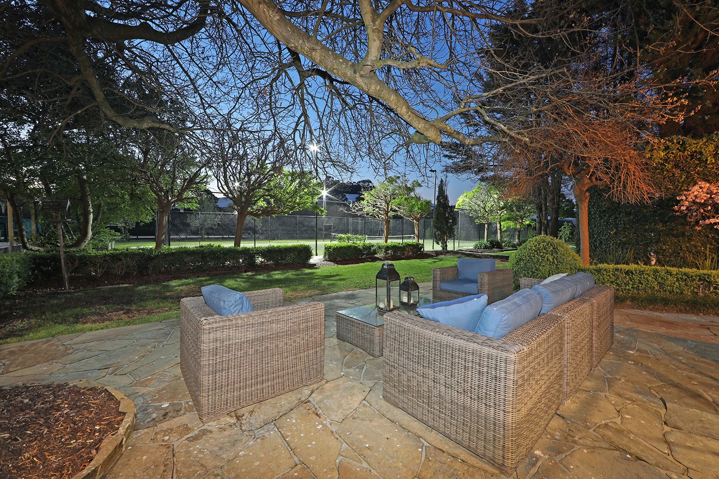 Outdoors, Castlemaine slate paved terraces and paths shaded by majestic oak trees lead to entertainment areas that provide a choice of leisure, activity or relaxation.