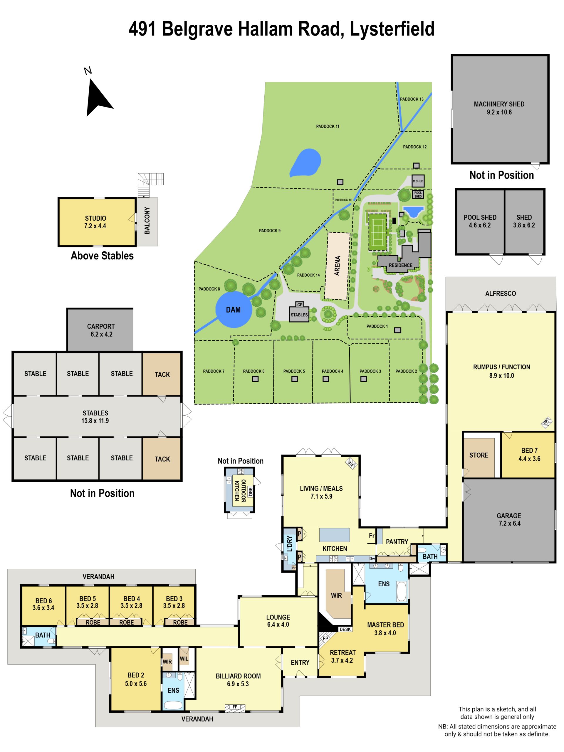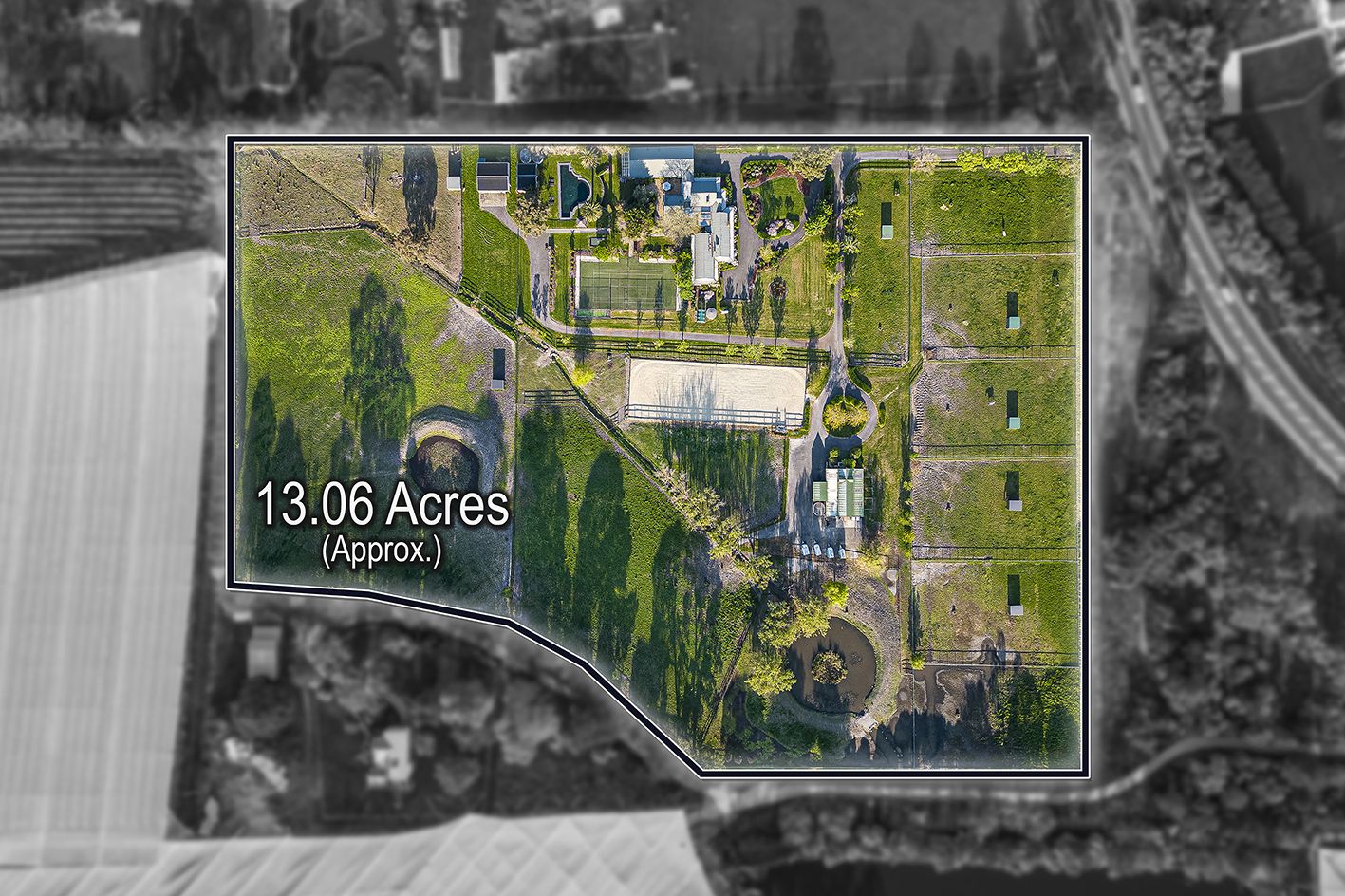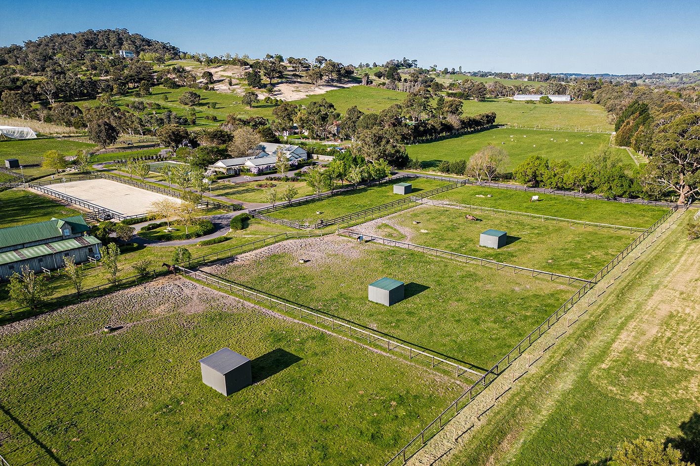 Equestrians will also be delighted by the fully featured 6-stable barn, floodlit dressage/riding arena and 10 dedicated horse paddocks.