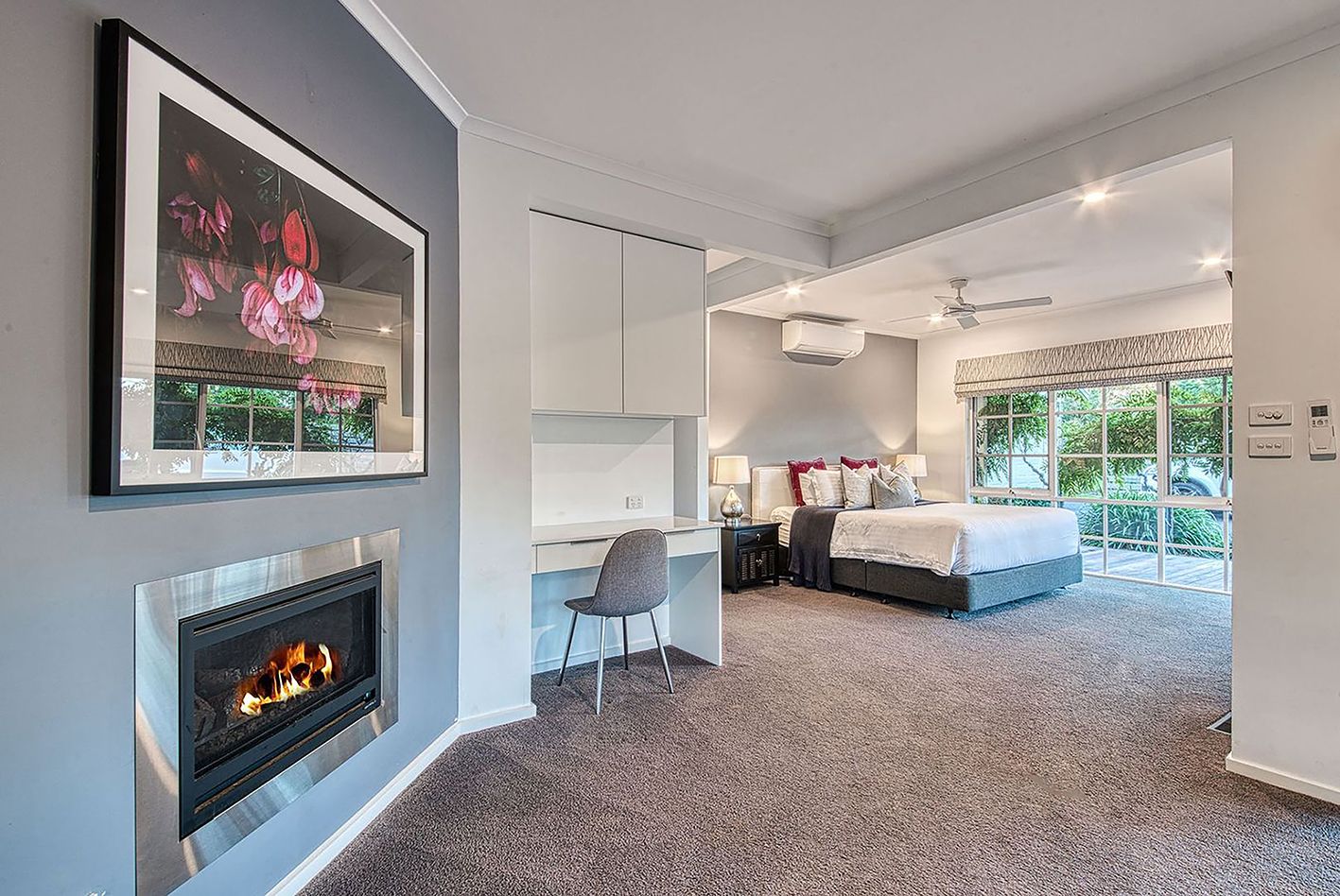 There are 7 bedrooms, a studio apartment and 4 bathrooms including a master suite and retreat featuring a romantic gas fire, a fully fitted walk-in dressing robe and luxe ensuite.
