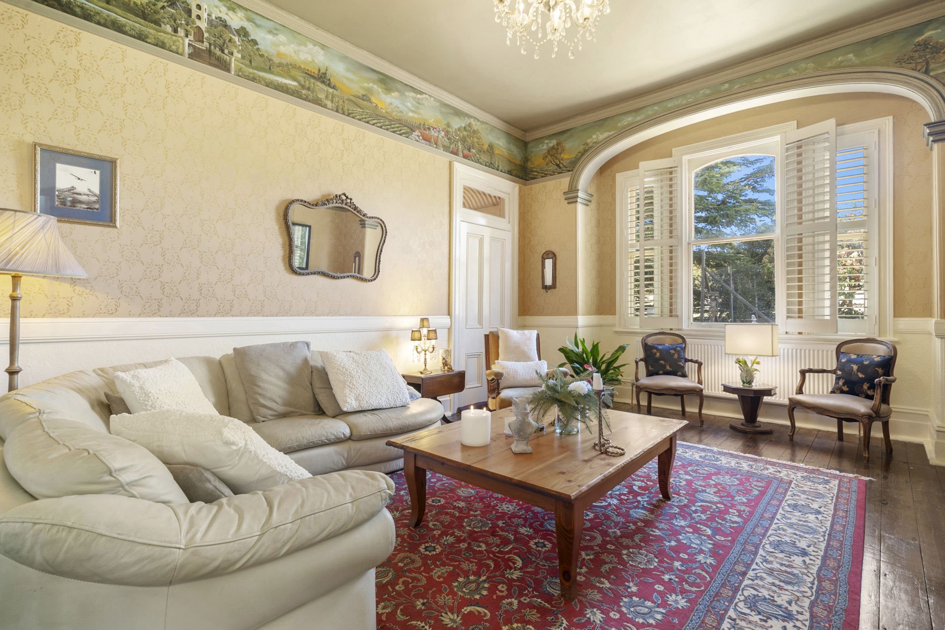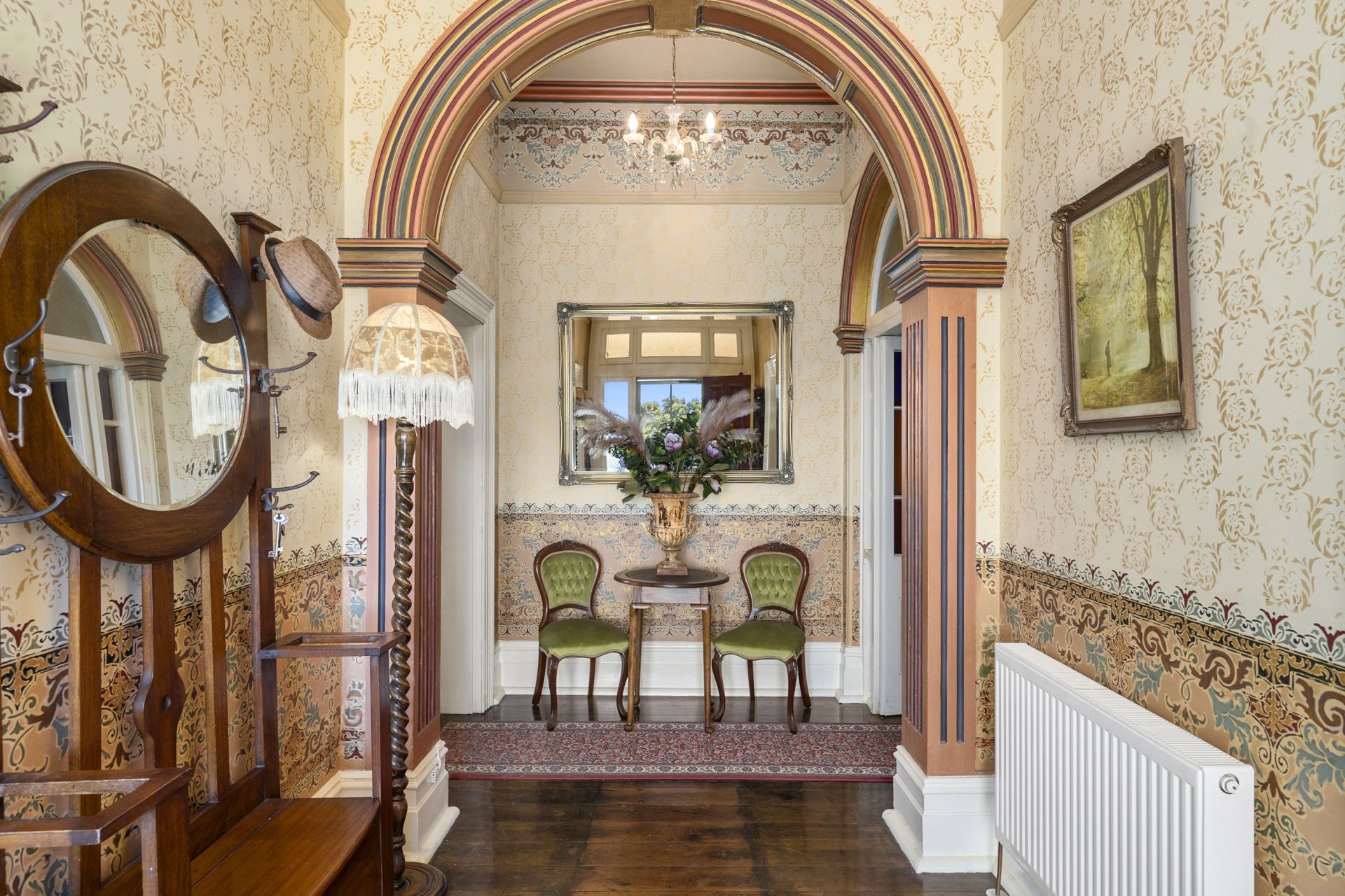 • A magnificent foyer with high ceilings, decorative arches and intricate stencilling