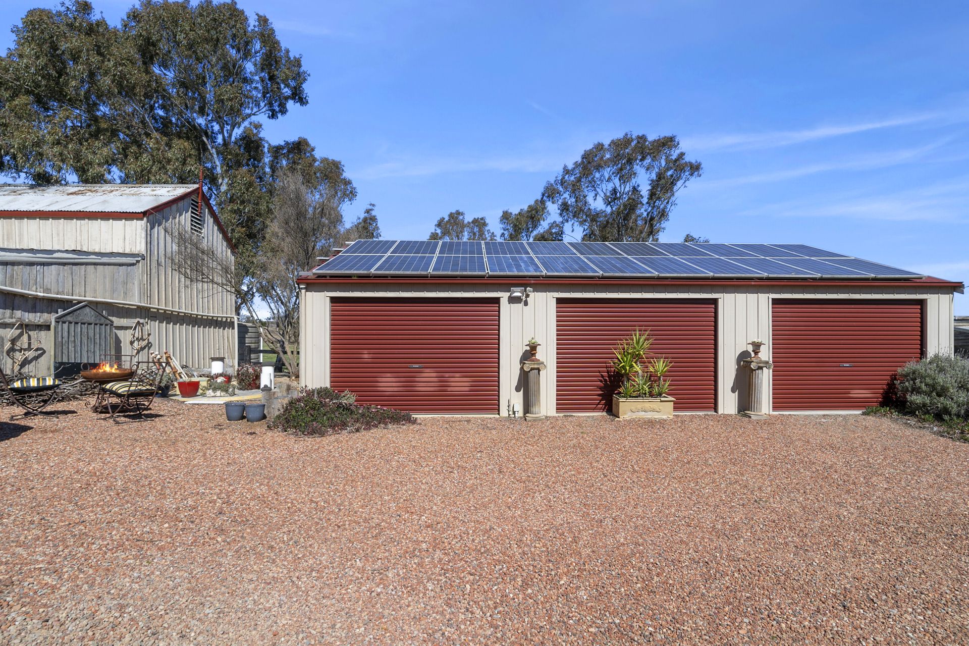 A colorbond triple garage with remote doors and a substantial solar system is tucked behind the house. The property also has mains power, and features sealed road all the way from the front of the tree lined driveway to the Motorway.