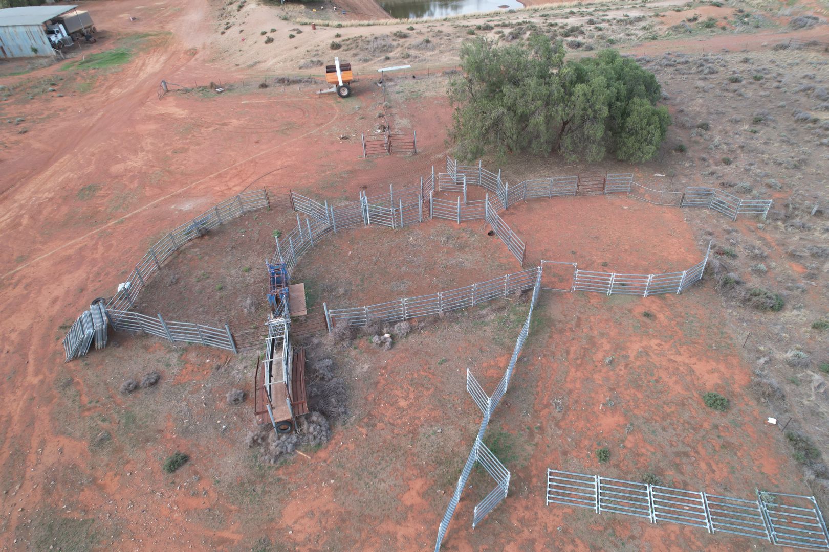 Good Cattle Yards Constructed of steel pipe with a part concrete race, bulge draft and forcing yard.
