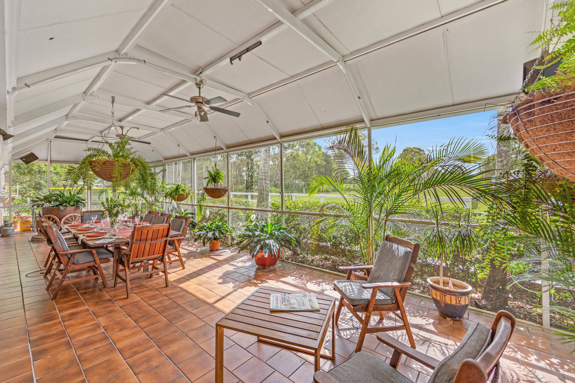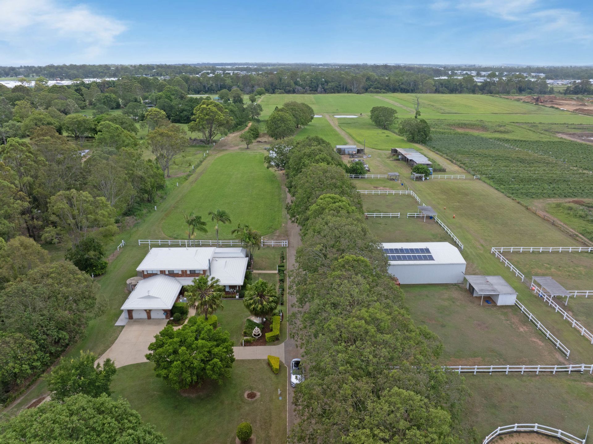 •Equestrian features include six horse paddocks, a front paddock with a round yard, and a grass arena.