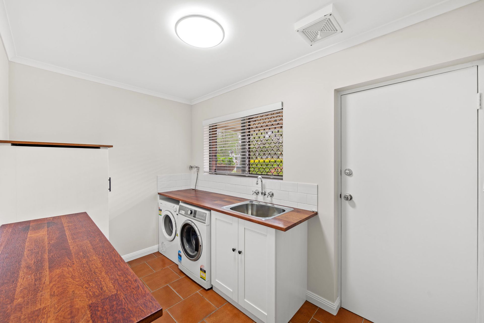 •The laundry provides hardwood benchtops and outside access.