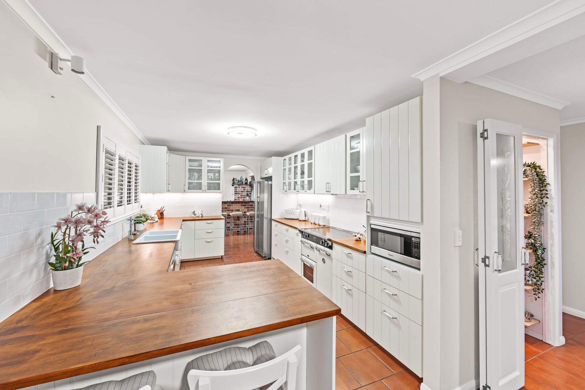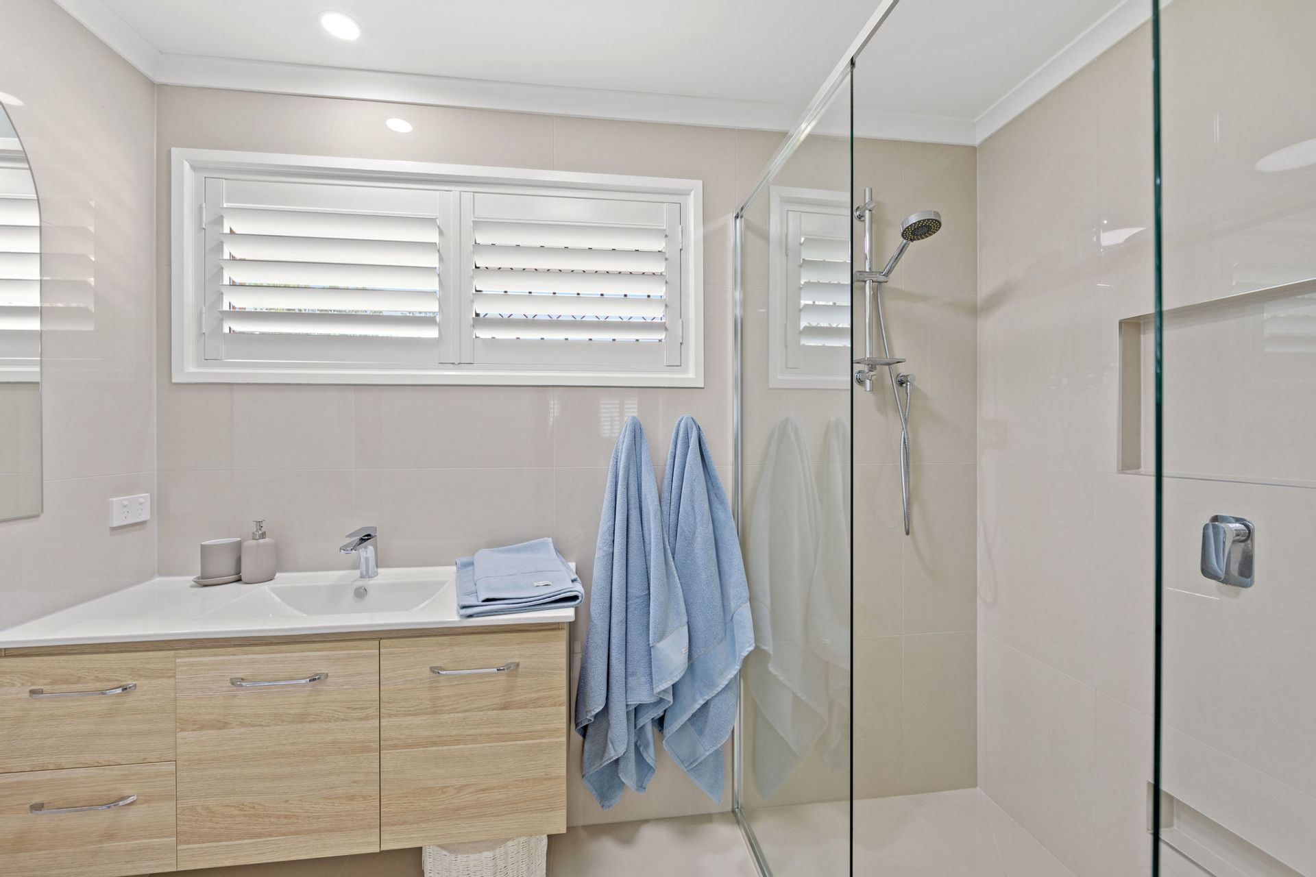•Elegant tiles and plantation shutters create a refined atmosphere.