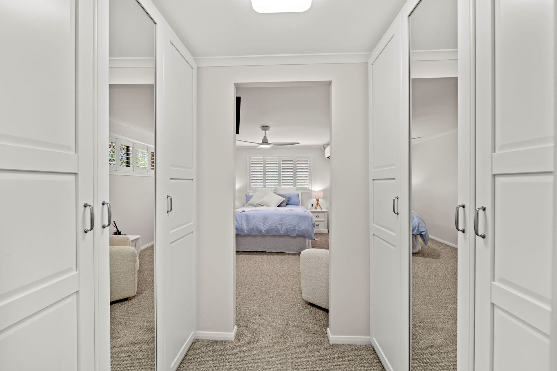 •The main bedroom features plantation shutters and a his-and-her walk-in wardrobe.