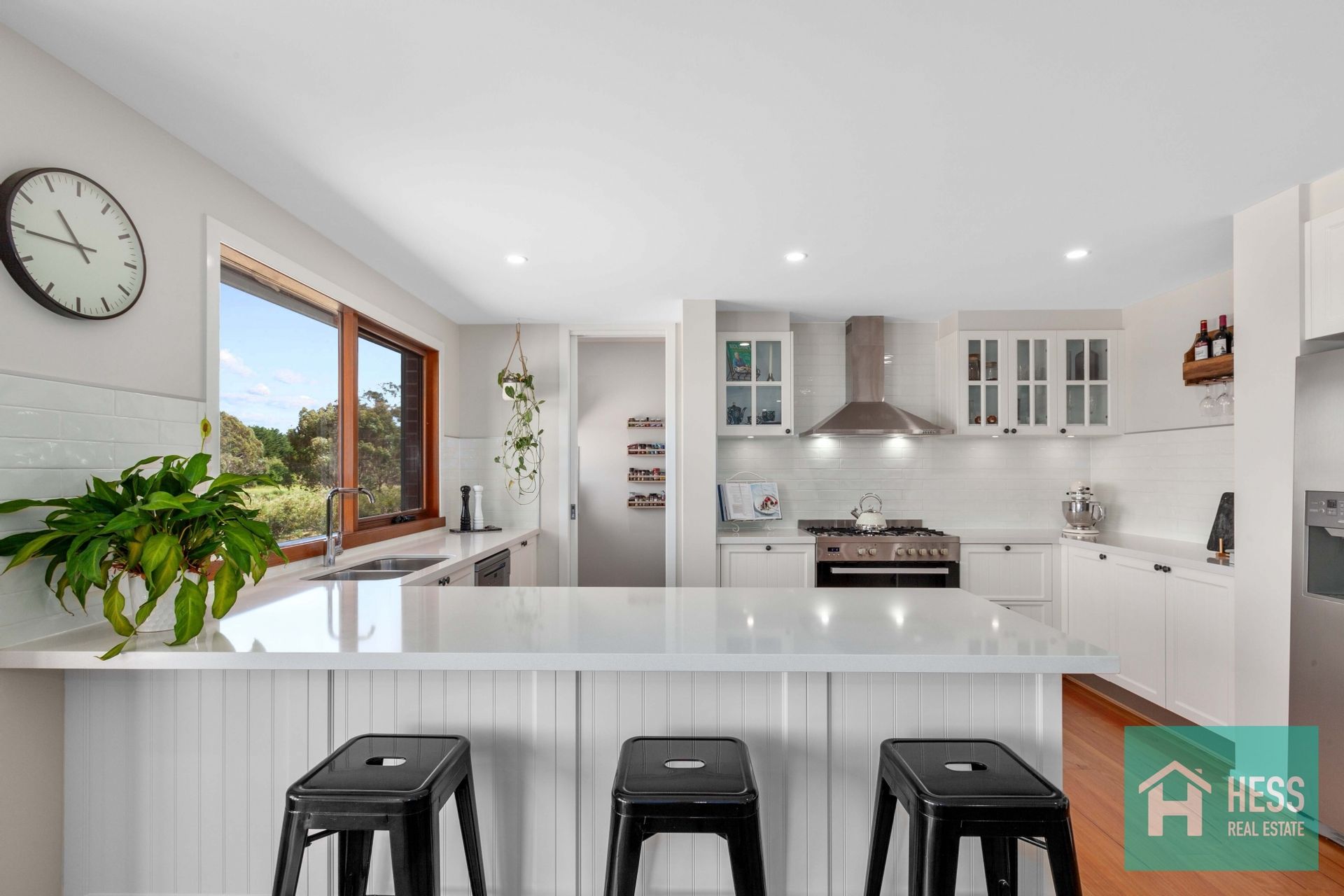 Walk through the front hallway and you notice the nine foot ceilings giving the property a real feeling of space. The two front living rooms, are spacious and could be utilised as one formal living and one as a kids retreat or whatever suits your lifestyle. The hallway then opens out to a modern kitchen-dining-living combination. The kitchen has all the desirable features, with a large walk-in pantry, large stone bench-tops, Hampton style cabinetry with vivid white shaker doors, dishwasher, 900 mm stainless steel stove and range-hood, plus plenty of storage for all of your kitchen appliances and other essentials - plus views for miles!