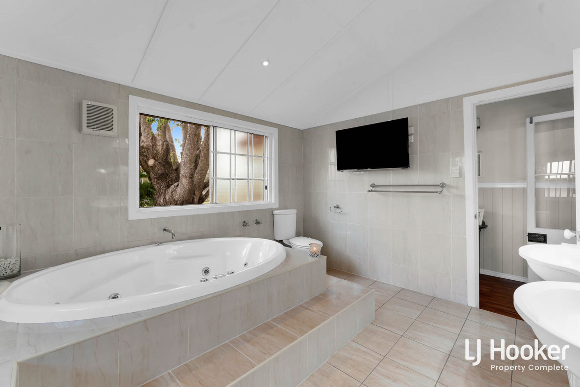 We all know that living on a property can be hard work and this bathroom has been set up for relaxation after a hard day, having large European shower, double vanity and massive spa bath that you can sit and relax while you watch a movie on the wall mounted TV.