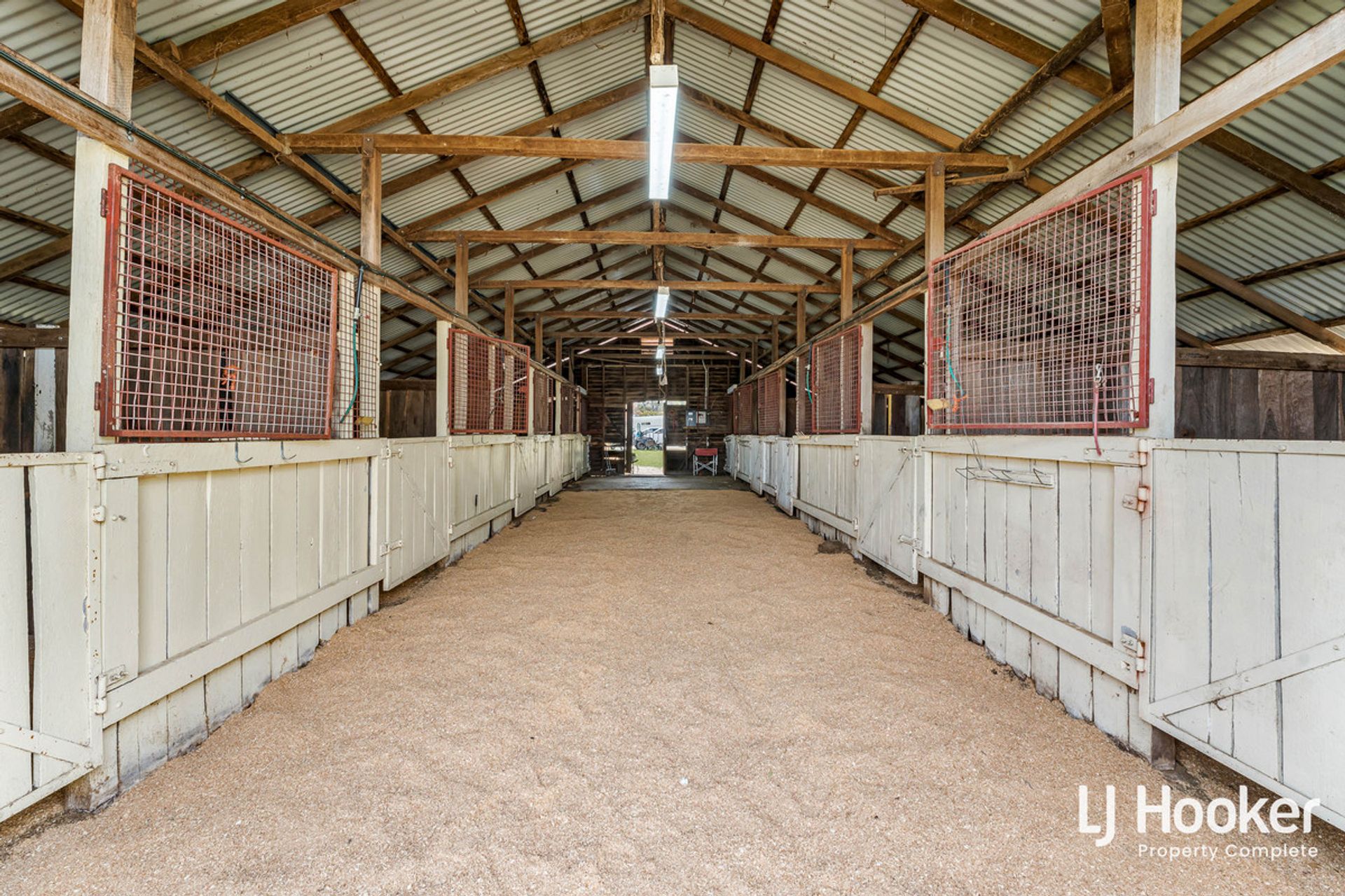 There are 2 barns and a large machinery shed, 4 paddocks, 11 yards, 2 round yards, arena, wash bay and more!