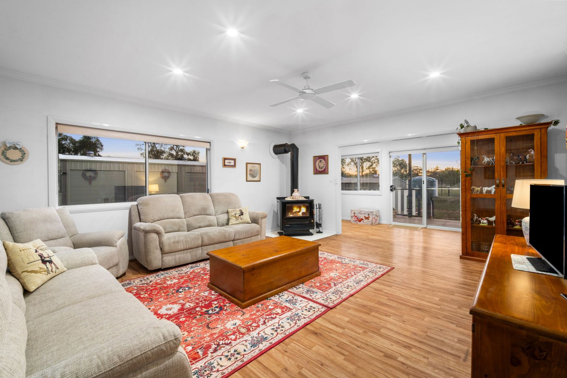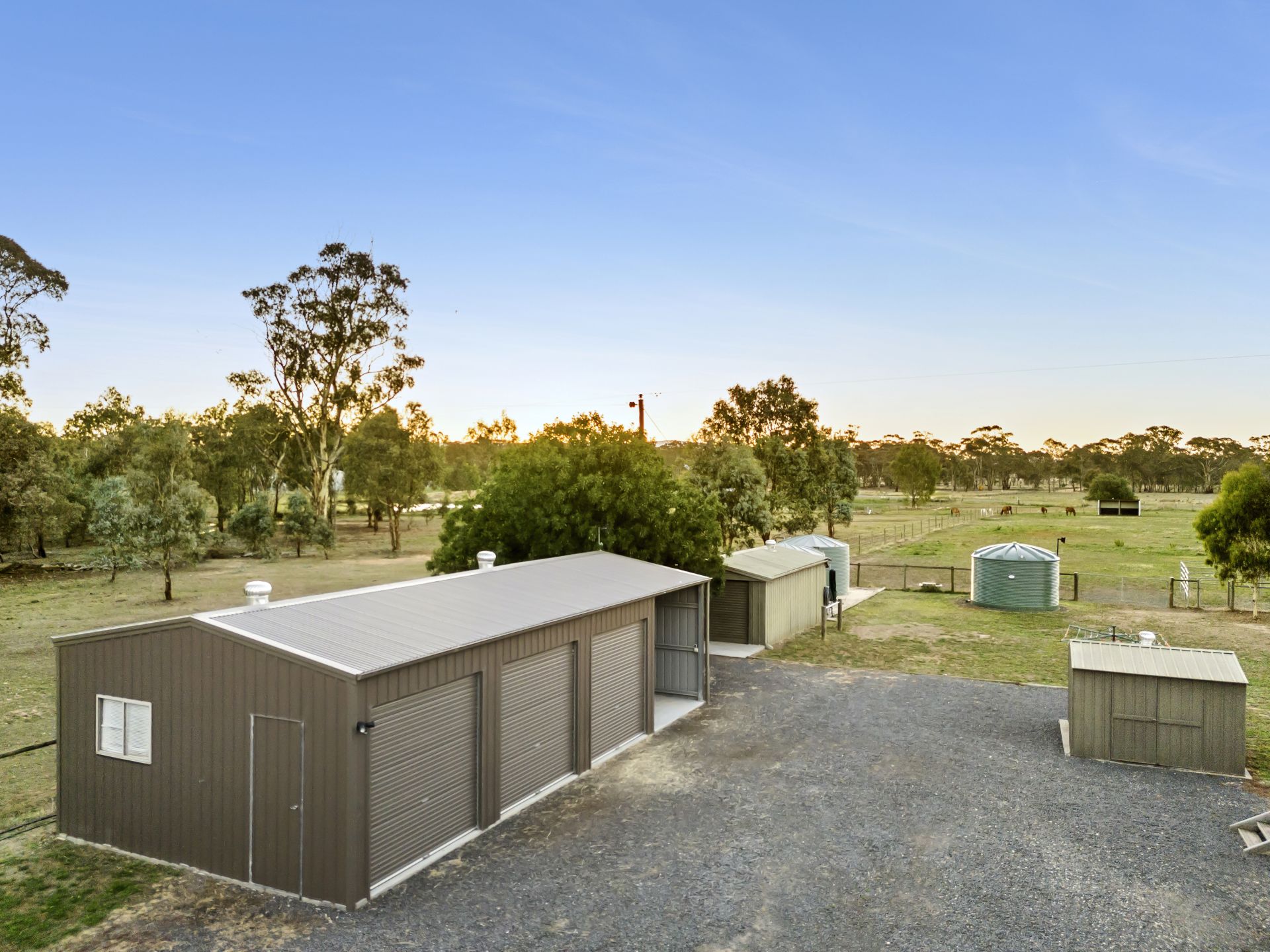 Your equine companions will feel right at home with a dedicated tack room, four separate horse paddocks with tie-ups, electric fencing, 3 horse shelters, a round yard for training, and a fully equipped dam with pump for watering. Storage is never an issue with multiple large sheds, all powered on slab, including a dedicated tack shed with rug racks, 5 saddle racks and shelving.