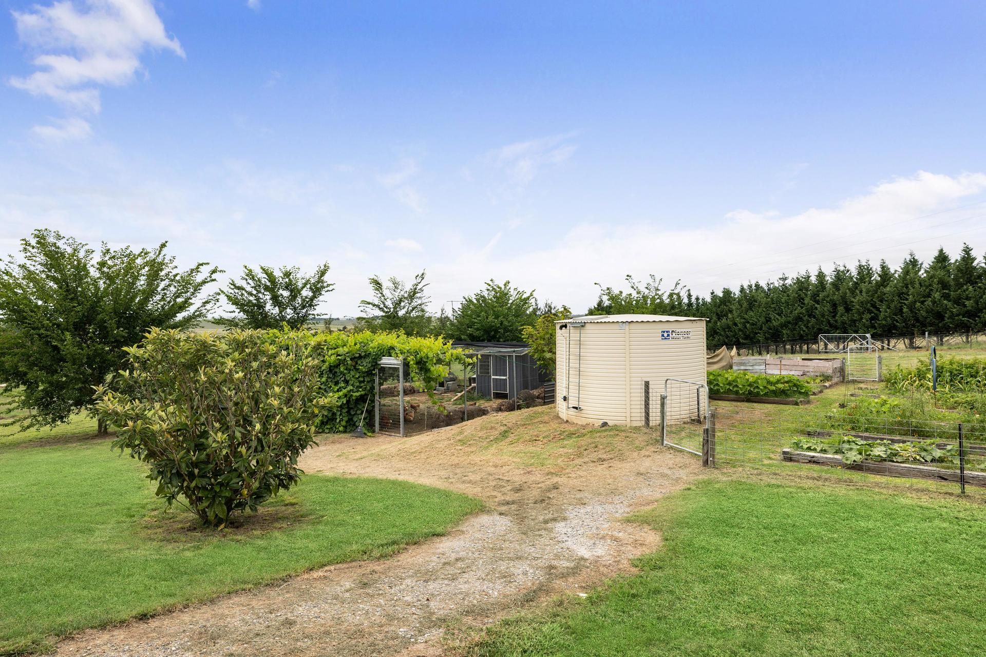Water: 90,000 litre off house; 20,000 litre tank for community non-potable (bore) with electric pump; 5,000 litre off garage; 500 litre tank for water trough in back paddock