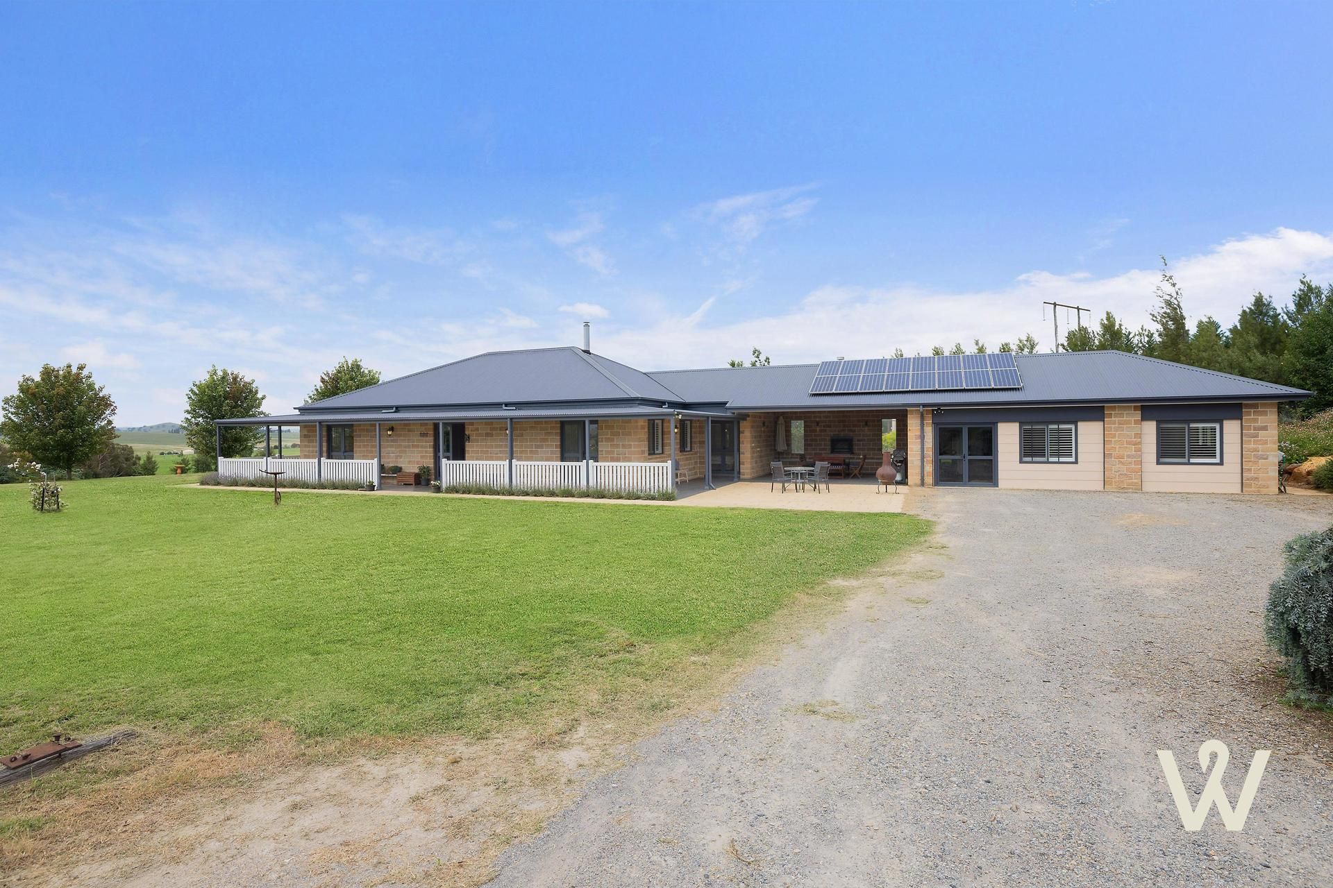 As you arrive, you're welcomed down a sweeping tree-lined driveway, which leads to a serene homestead - set high, and privately, to the rear of the park-like, private, 10 acre plot. Facing the home, the quality of the build is evident. A sandstone-style brick facade, coupled with a modern colour bond roof and wrap-around verandah, give a modern twist on 'traditional country', while the colour palette exudes class and character.