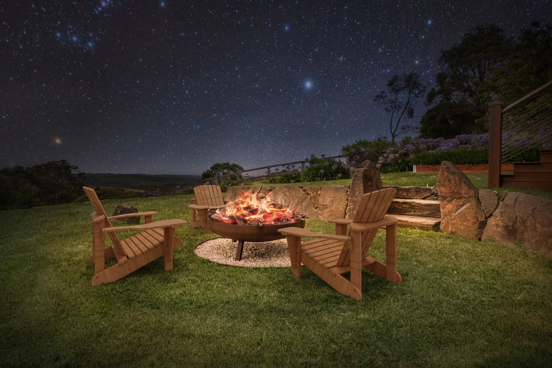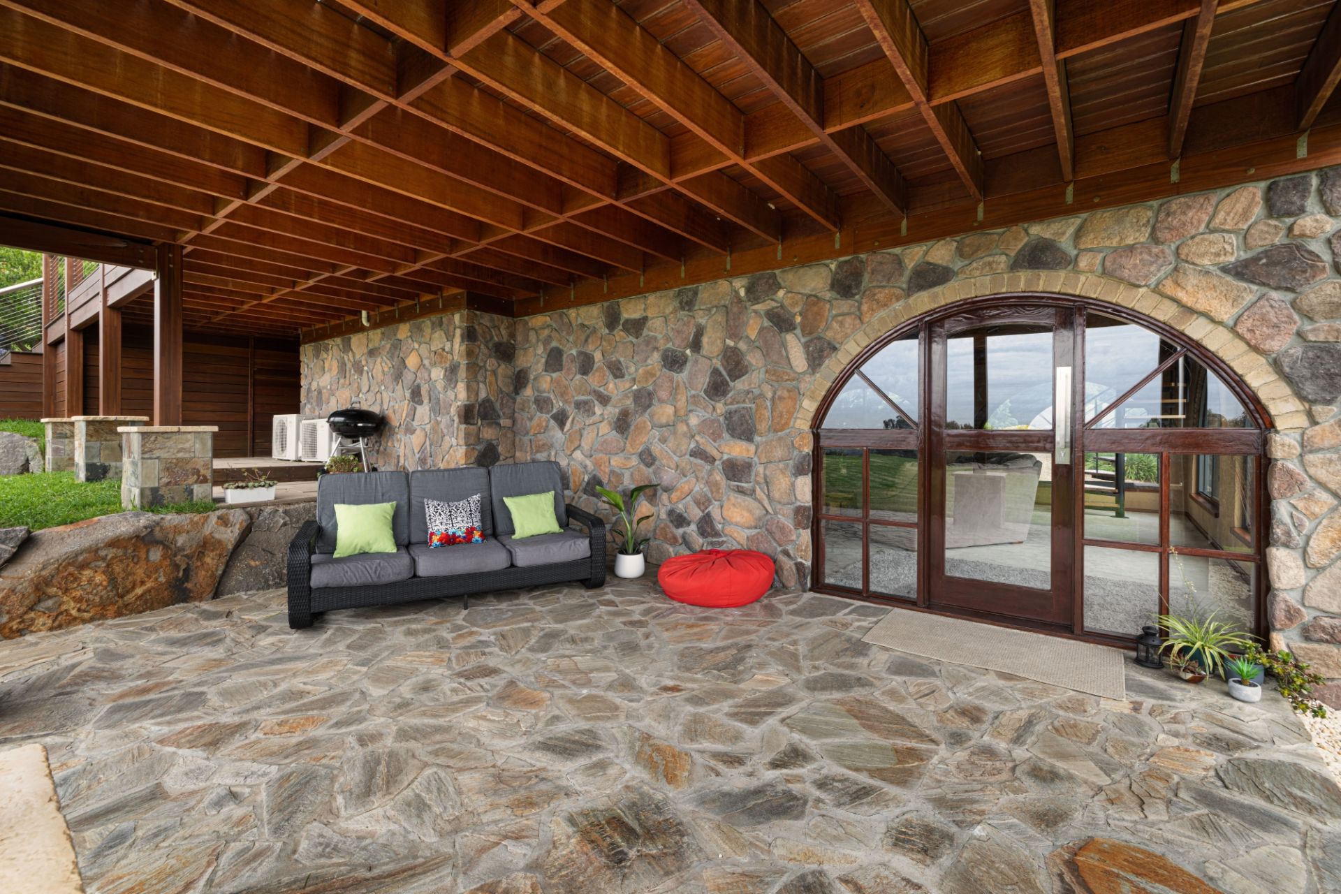 The piece de resistance lies downstairs. A huge break-out room with arched windows, cedar ceilings and a romantic fireplace. This room offers a sense of privacy and its expansive long view is a true eye-opener - an escape, a library, a studio, a music room, a lounge room – the choice is yours. Through its eastern door, access to the under cover al fresco and fire pit provides that long eastern view echoing the more spectacular one from upstairs.