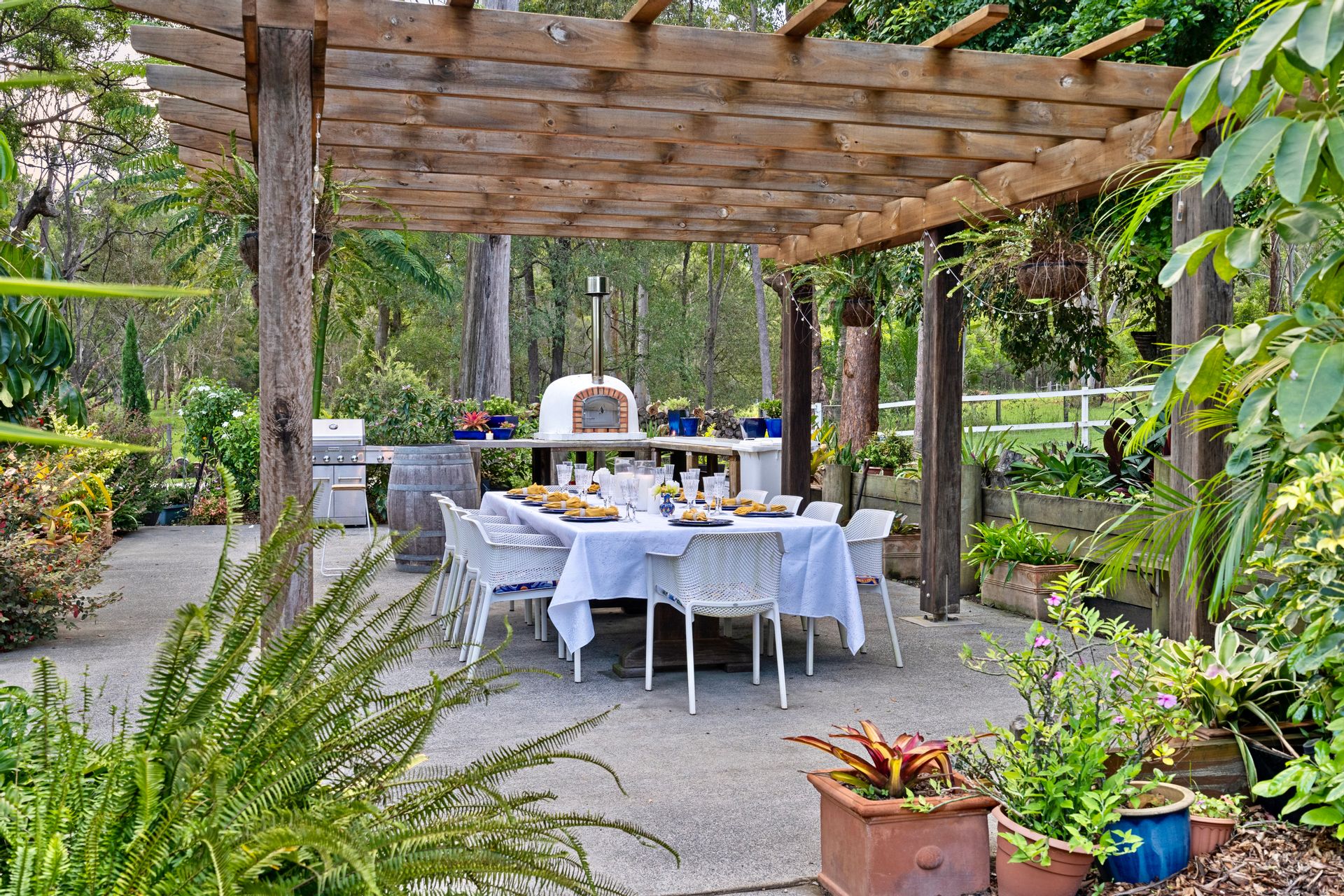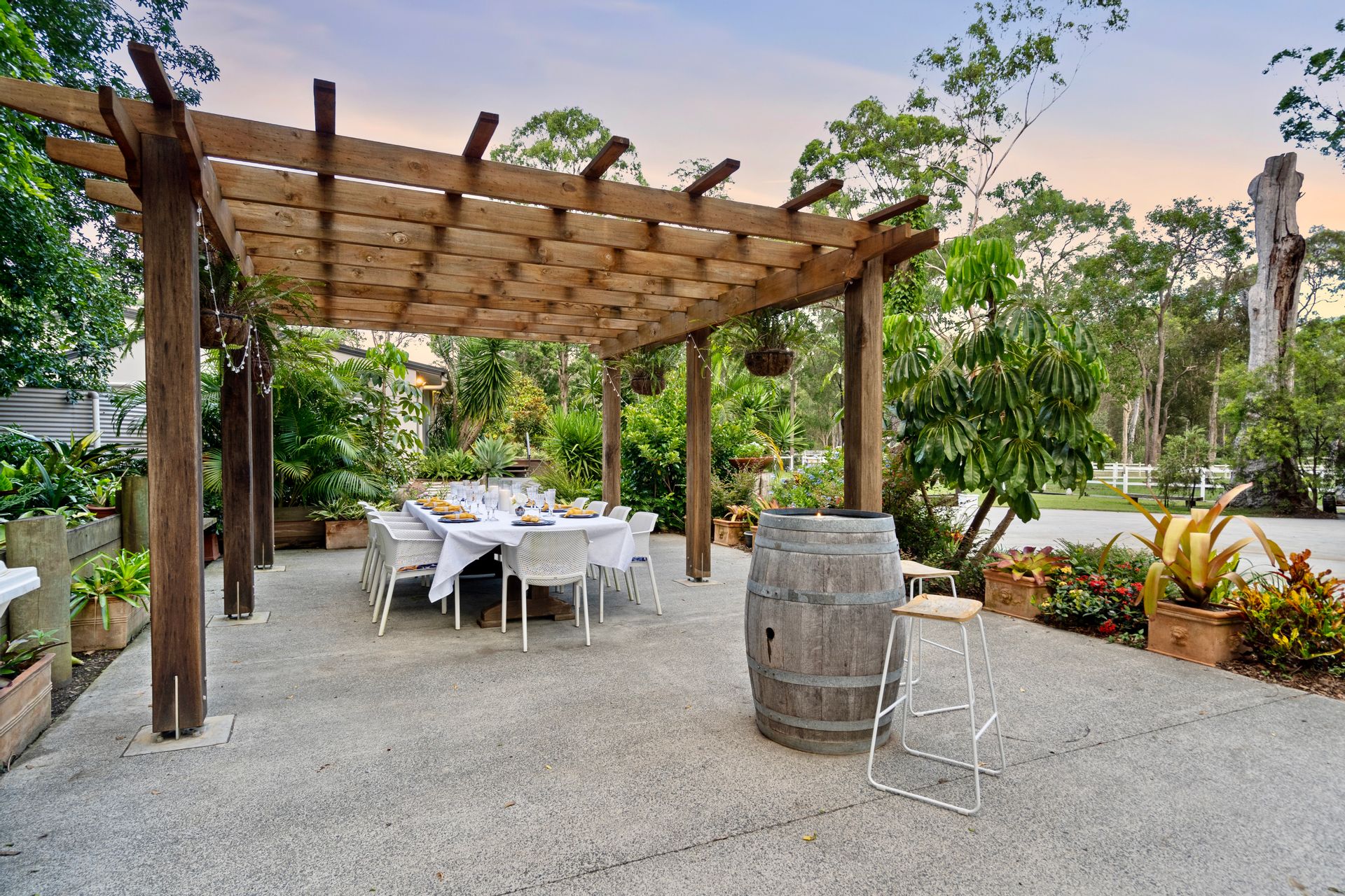 * There are multiple Alfresco areas to offer a variation of settings for any sized gathering - incl. a Poolside Gazebo, the Casual Alfresco with electric Vergola adjoining the kitchen, a semi-enclosed and screened area overlooking the paddocks, plus a surreal Garden Setting with built-in Pizza oven!
