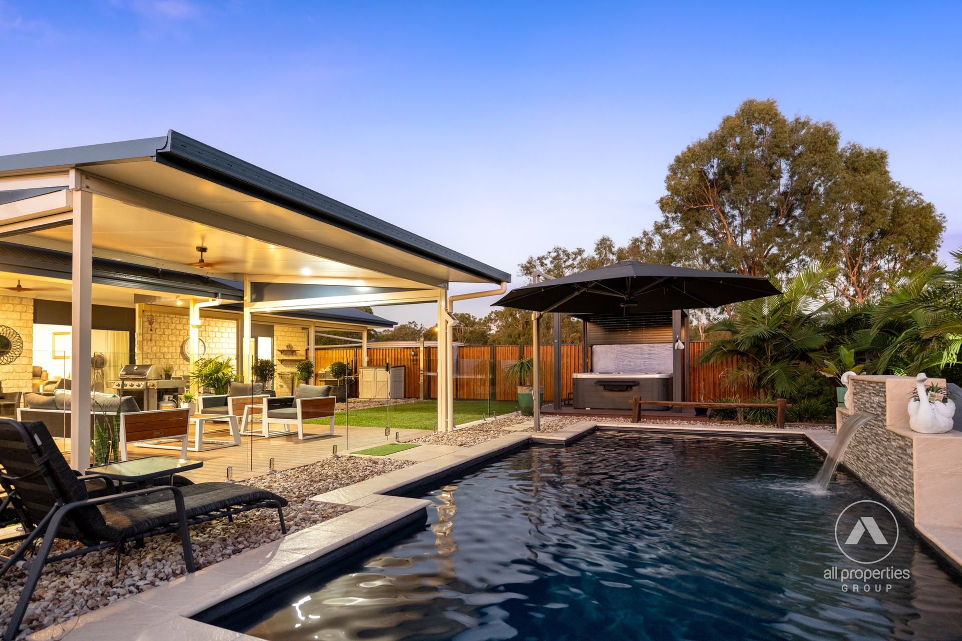 - 9m x 3.5m inground saltwater pool with cascading water feature