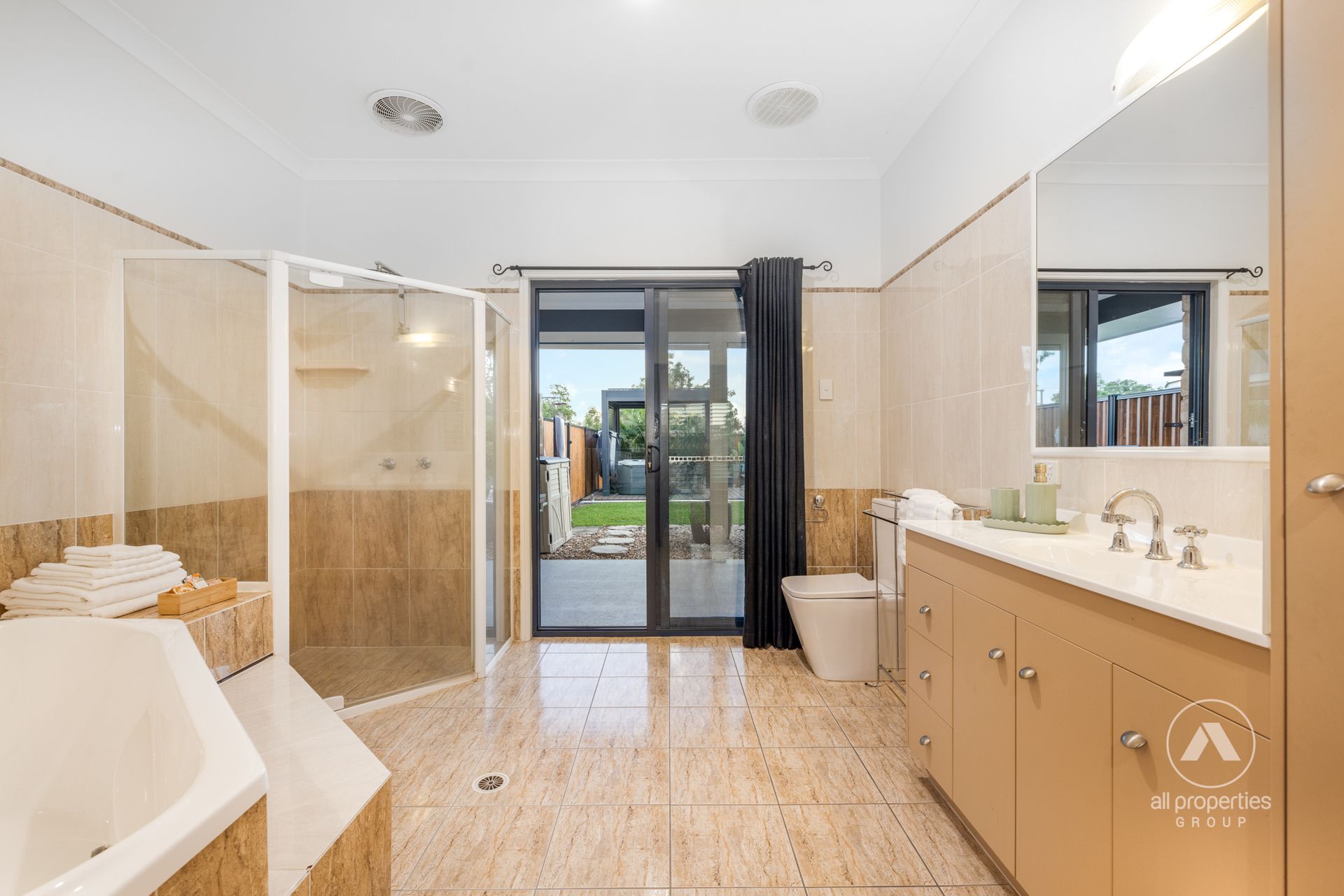 - Master Suite: WIR + aircon + ceiling fan + barn door to luxurious ensuite with corner spa bath