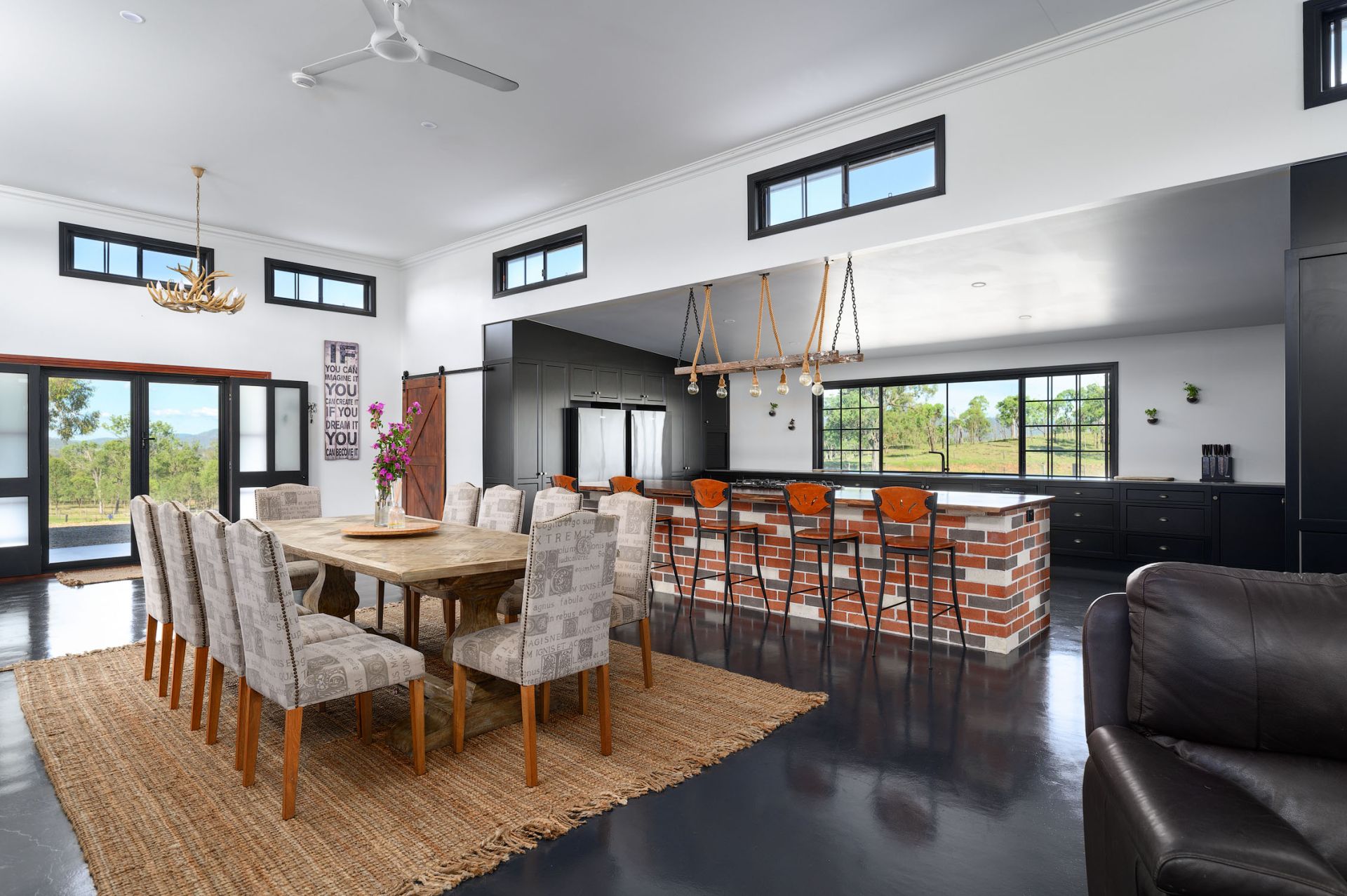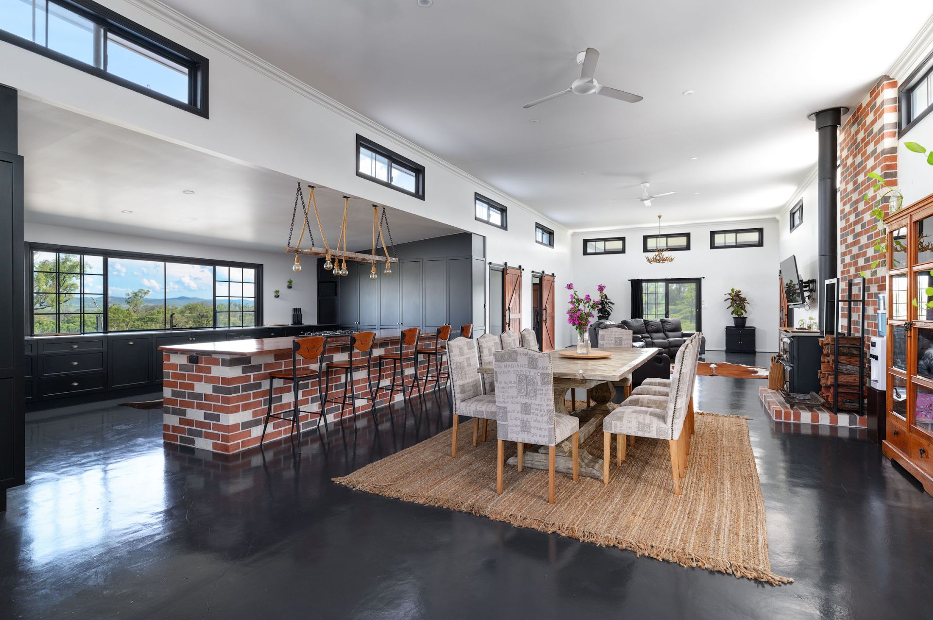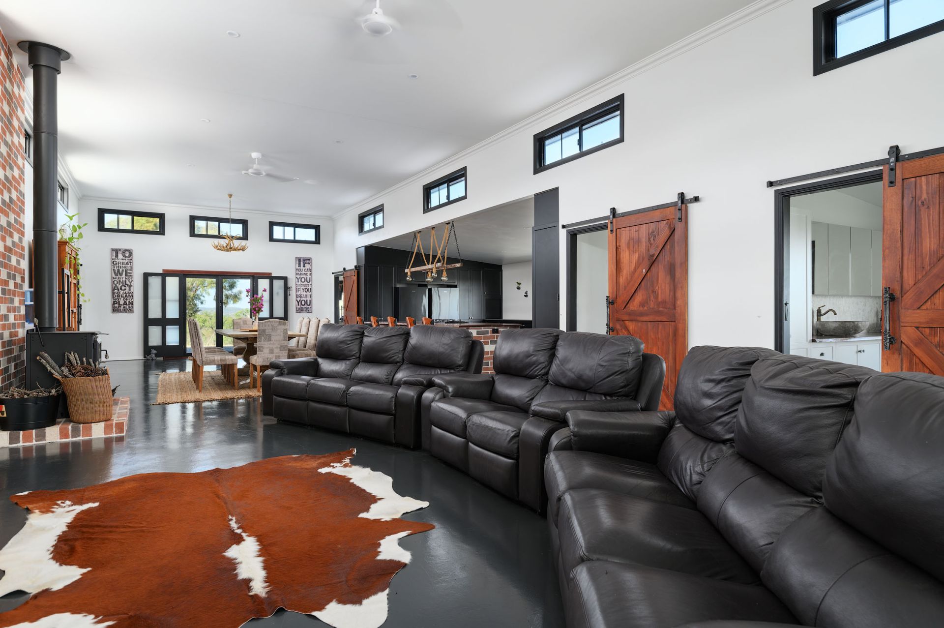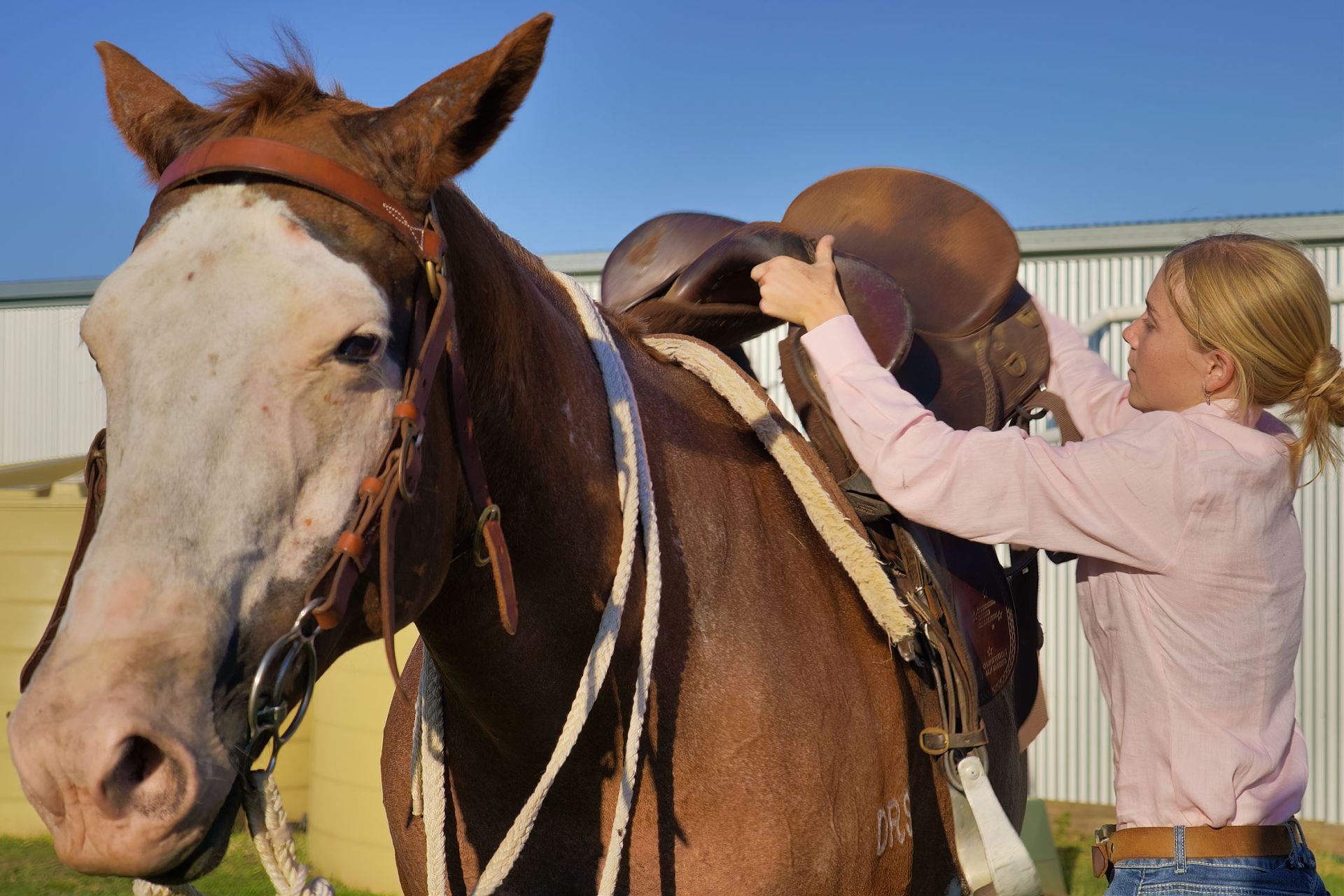 Fenced into 9 horse paddocks featuring timber split posts with 4 strand electric and concrete waters troughs to all, Full sand arena and cutting pen under lights, Enclosed tack room, 7 x day stables