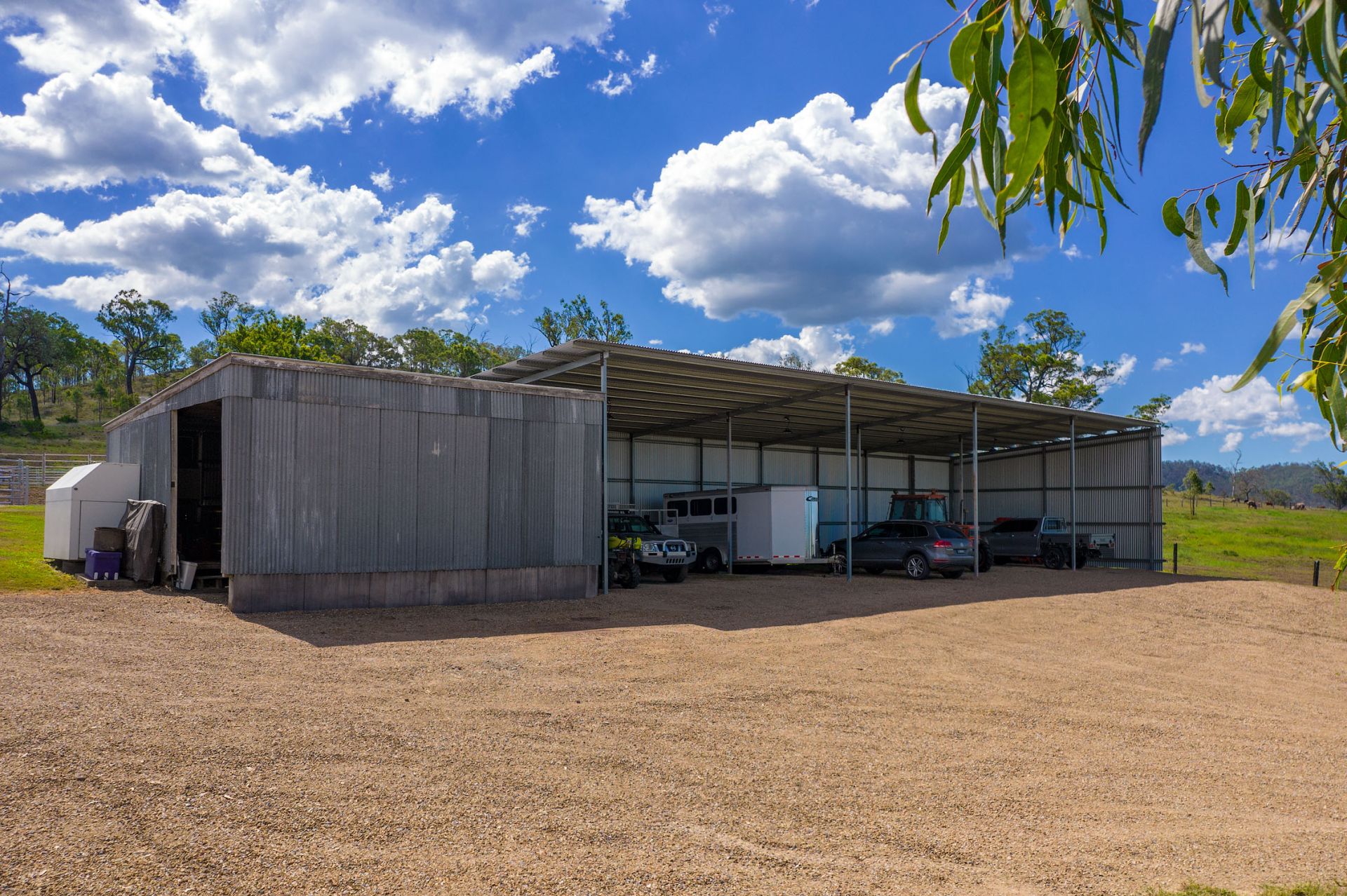 Steel cattle yards with undercover vet crush and scales