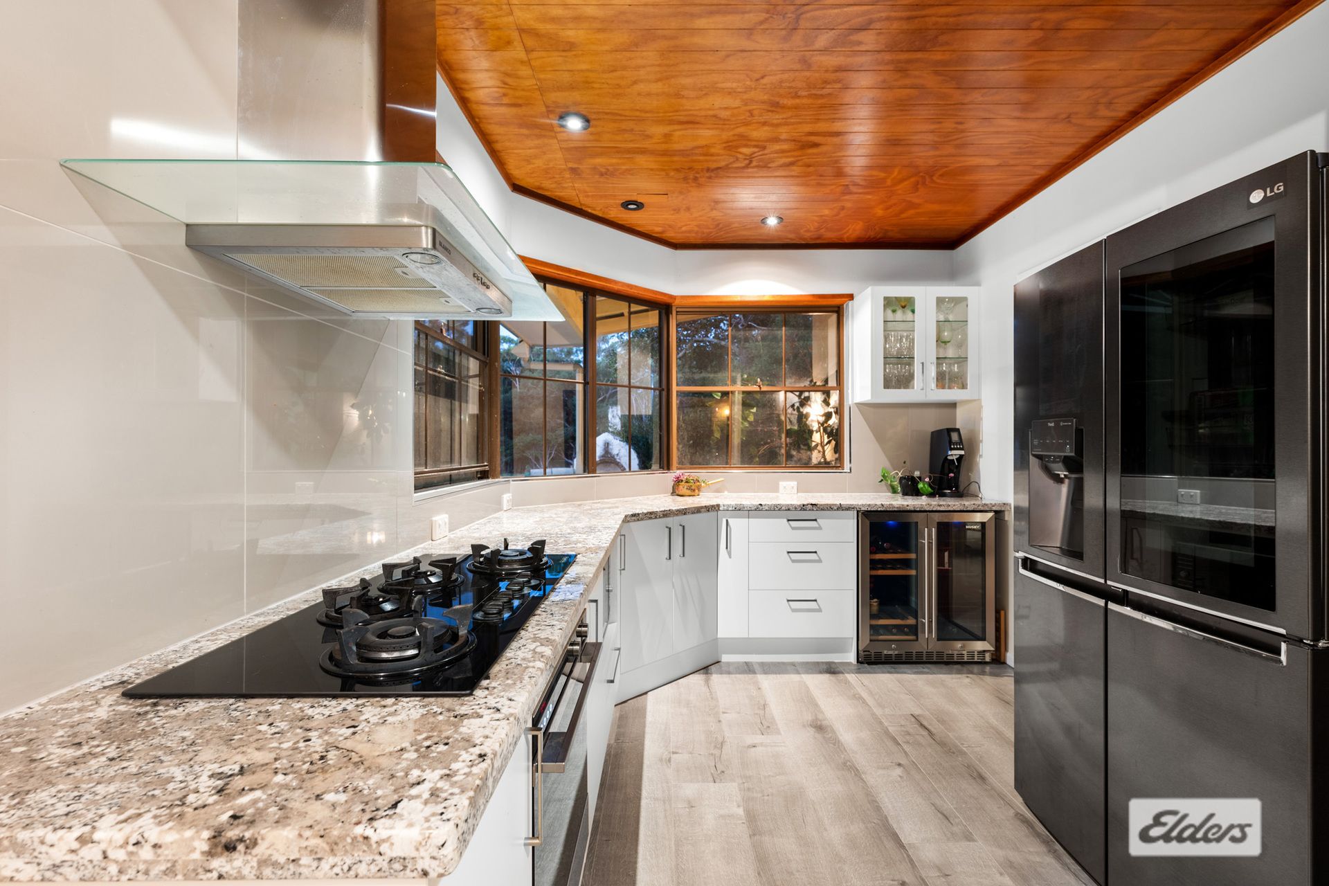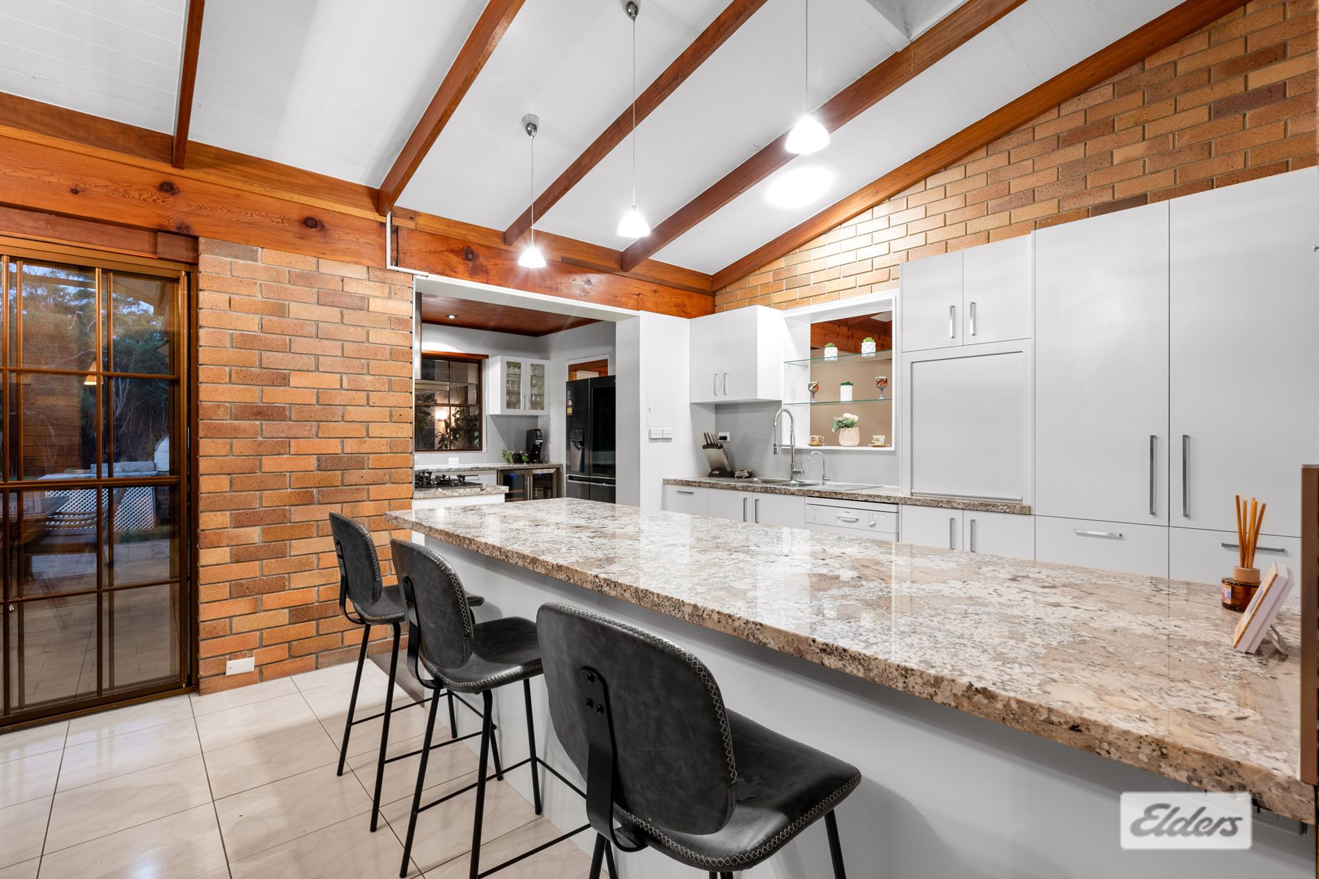 The main kitchen, recently renovated with granite benches, gas cooktop, soft-close draws and breakfast bar, beckons culinary enthusiasts to create culinary masterpieces in style.