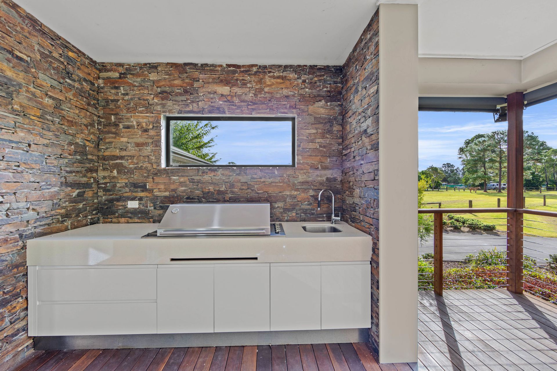 • The kitchen and dining each have glass sliding doors that seamlessly open to the expansive covered hardwood spotted gum deck;