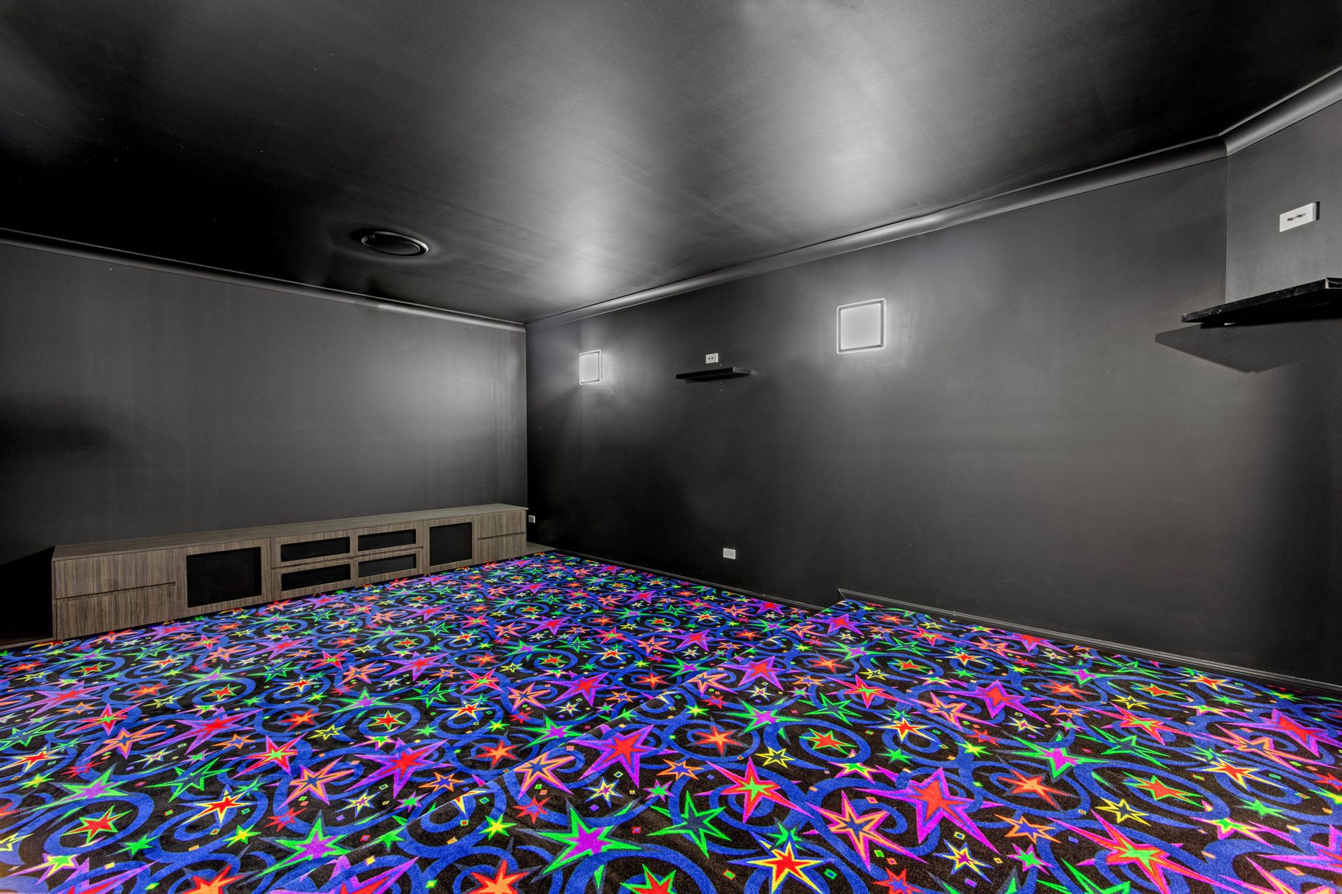 • Commercial cinema-grade, glow-in-the-dark carpet;