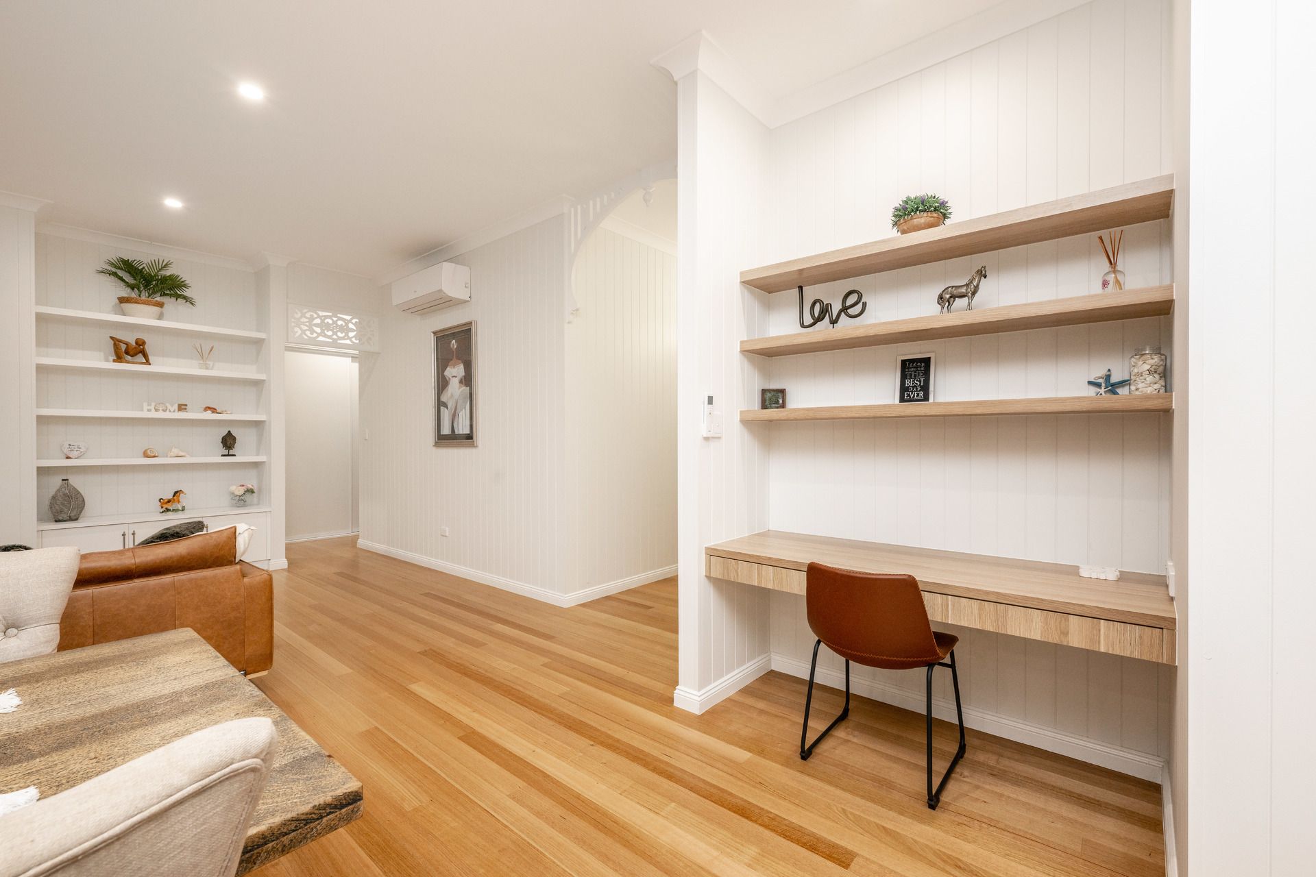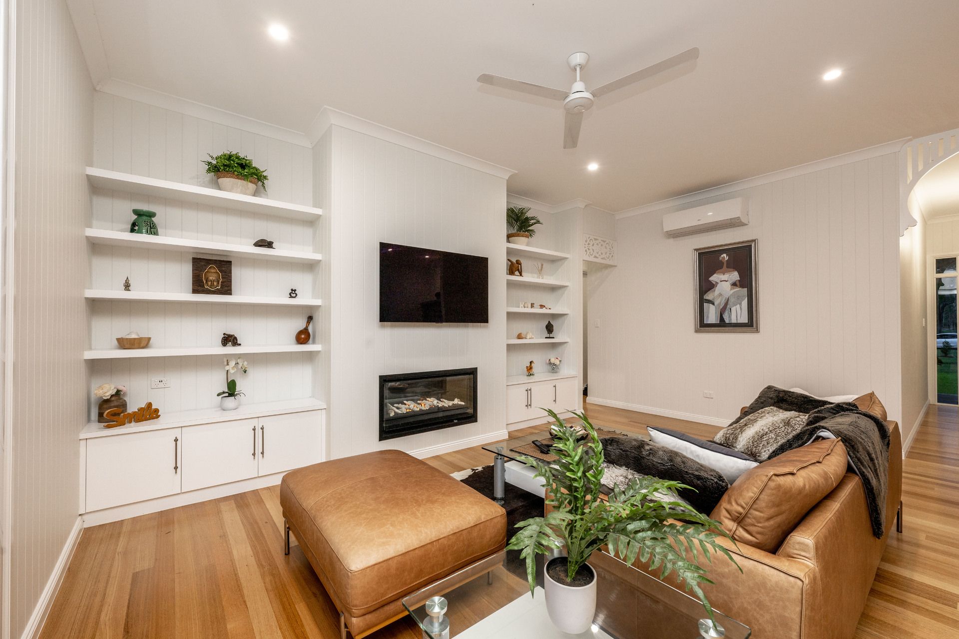 *Stunning built in fire place for the cooler months - built in custom cabinetry and stunning VJ panels, a standout feature in the main living space