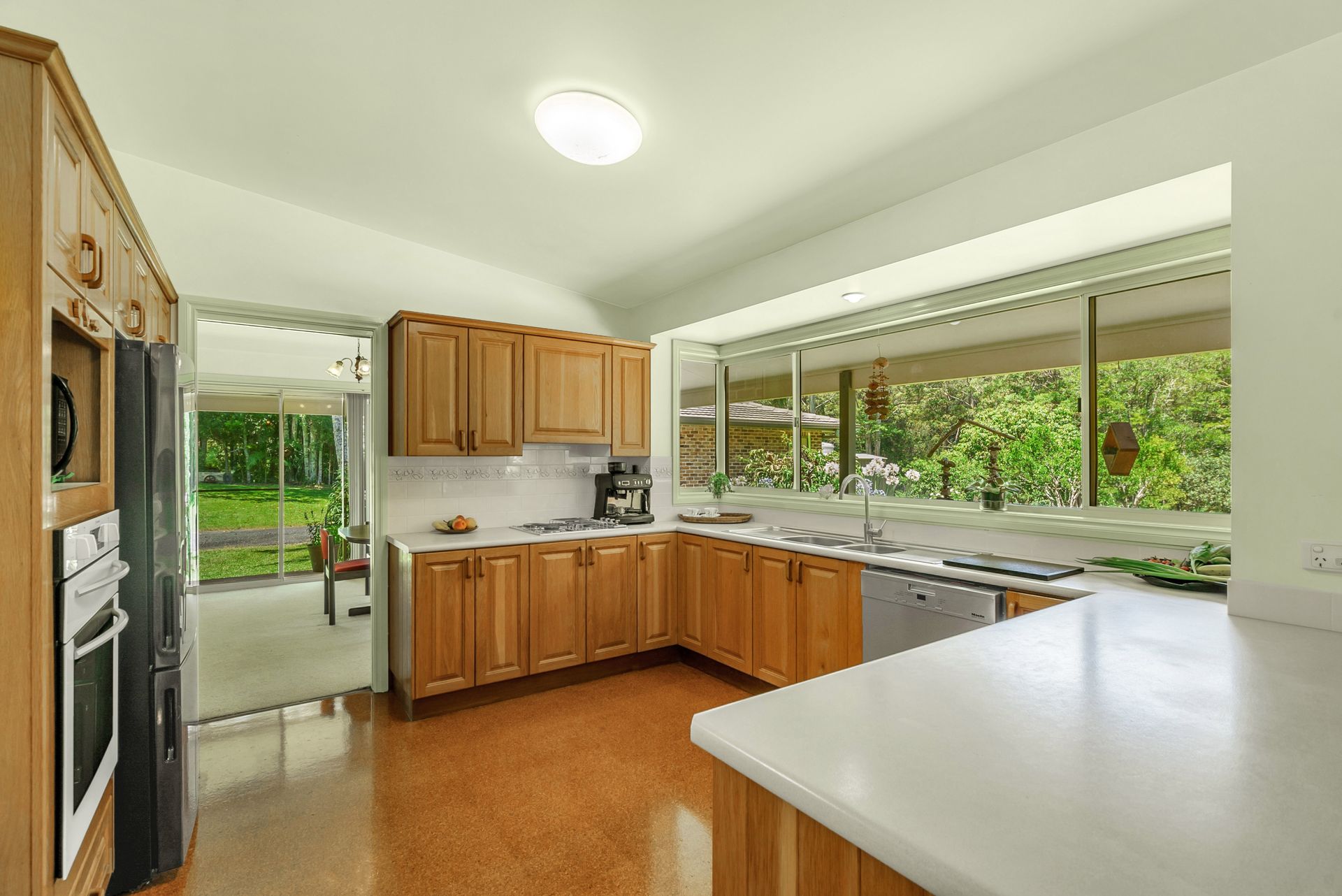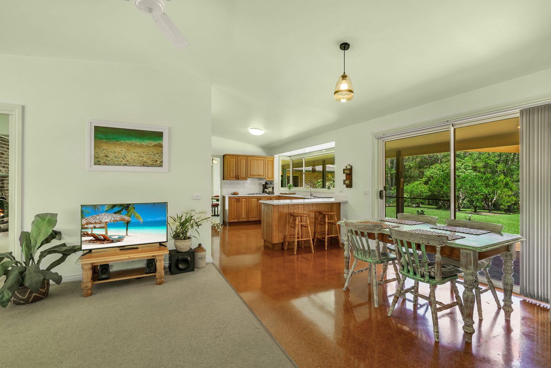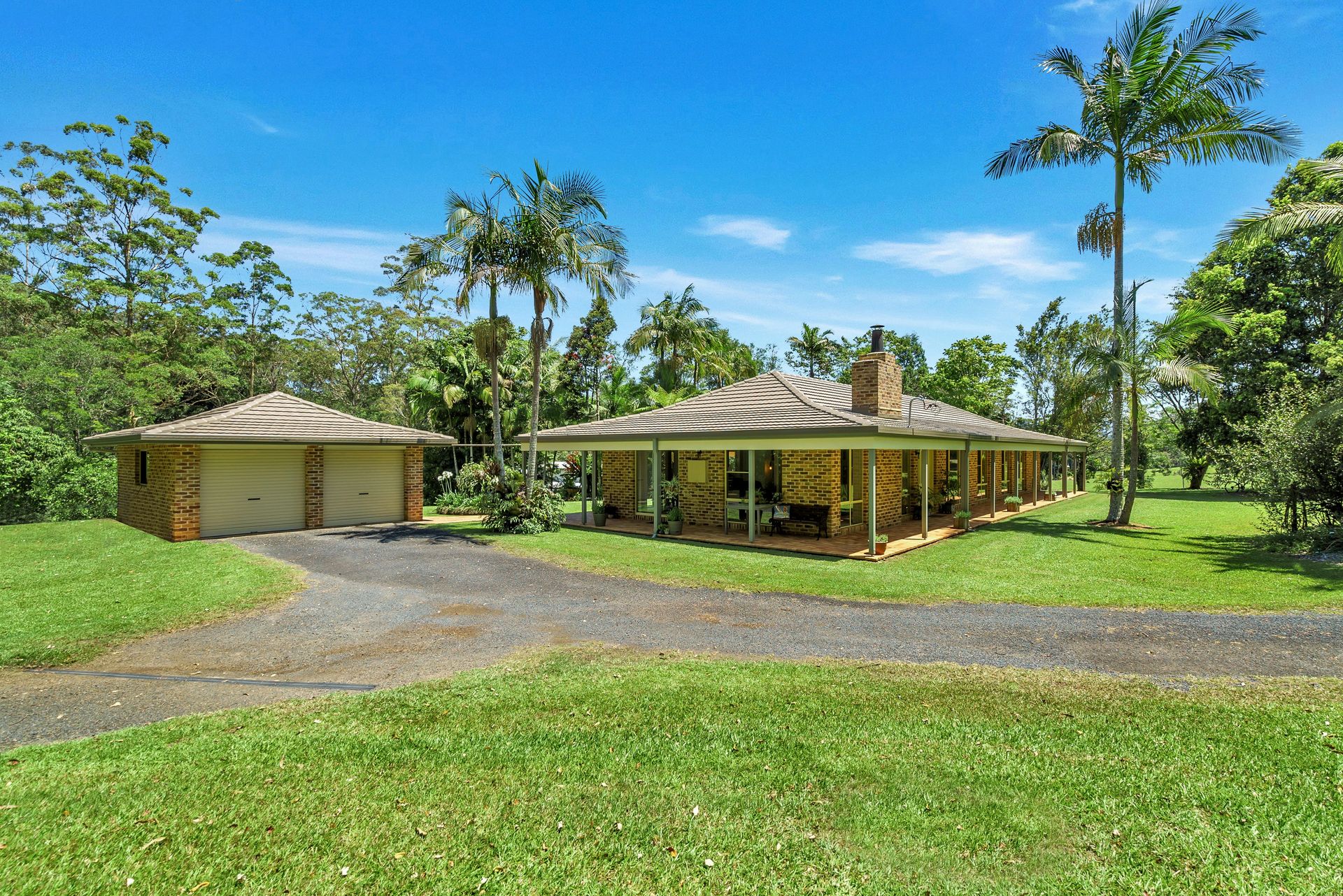 Nestled within a charming garden setting the lovely Homestead style 4BR brick main home, featuring wrap around verandahs, invites you in with its seamless layout. Enjoy the tranquility of nature through the large windows, observing Lorikeets, Rosellas, King Parrots, Wampoo, and Wonga pigeons leisurely strolling in the backyard while you go about your daily activities. The ambience is complemented by the soothing sounds of the ever-changing chorus of birdsong.