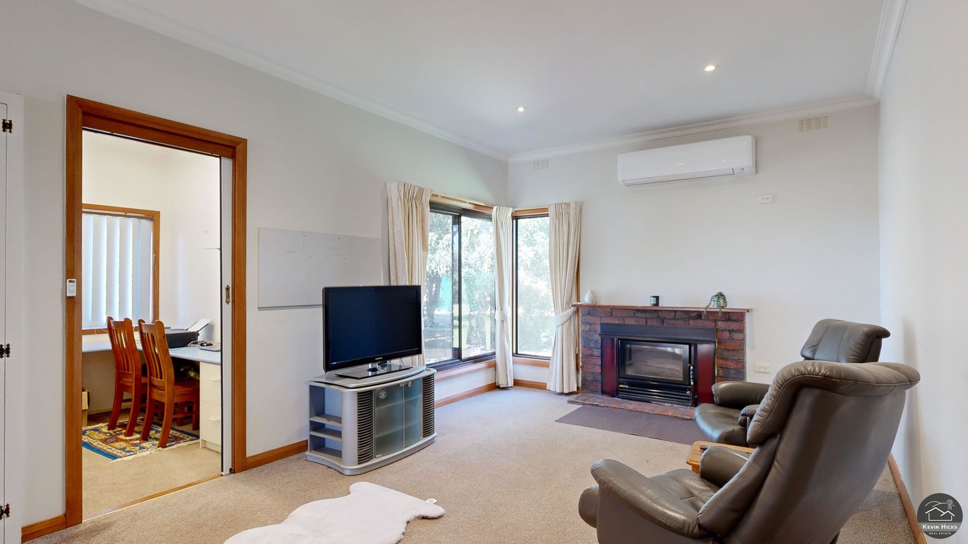 Inside, the home features a bright and functional open-plan kitchen with a walk-in pantry, adjoining dining area, and two spacious, light-filled living rooms. Year-round comfort is guaranteed with split system heating and cooling, complemented by a Coonara wood heater that keeps the home warm throughout the winter months.