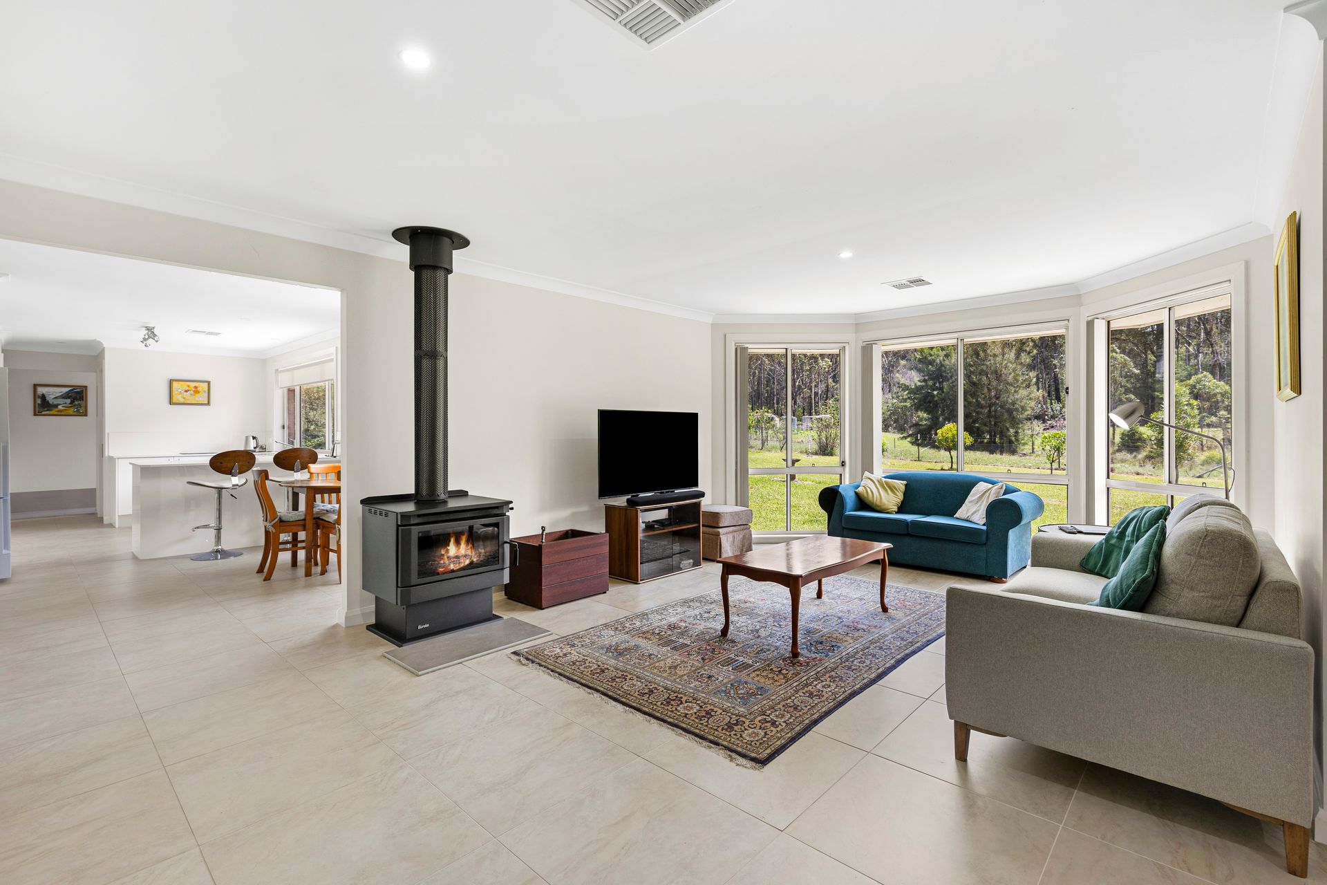 The house has ducted reverse cycle heating and air conditioning in addition to the charming wood fireplace. The house is 10 years old and still has that new house feel. Enjoy the luxury of town water or rain water ensuring self-sufficiency and peace of mind. The property has a lovely garden of sweeping lawns and established deciduous trees. At the back of the house there is a productive orchard of easy-care fruit trees bearing fruit from plums, citrus to avocados.