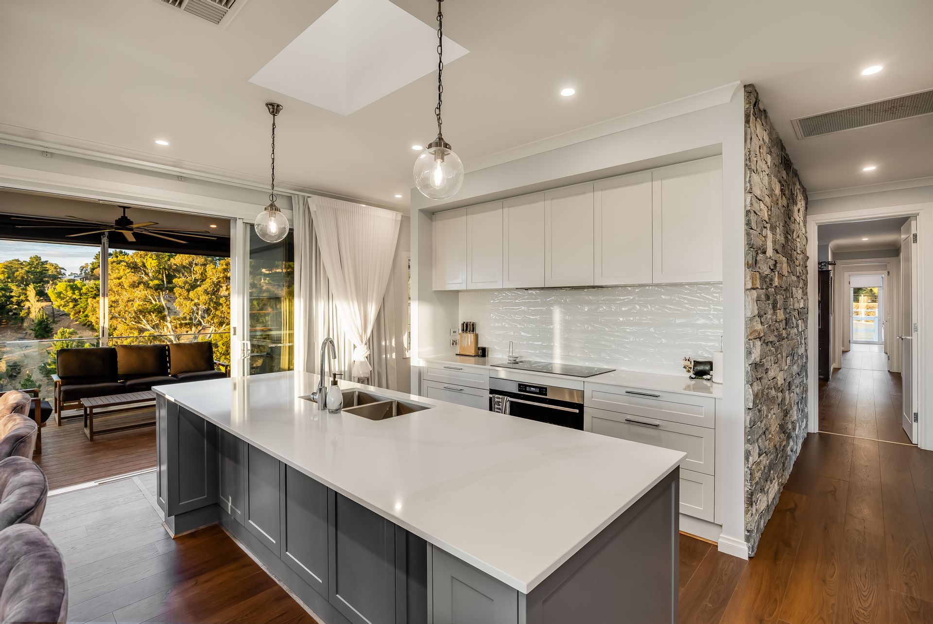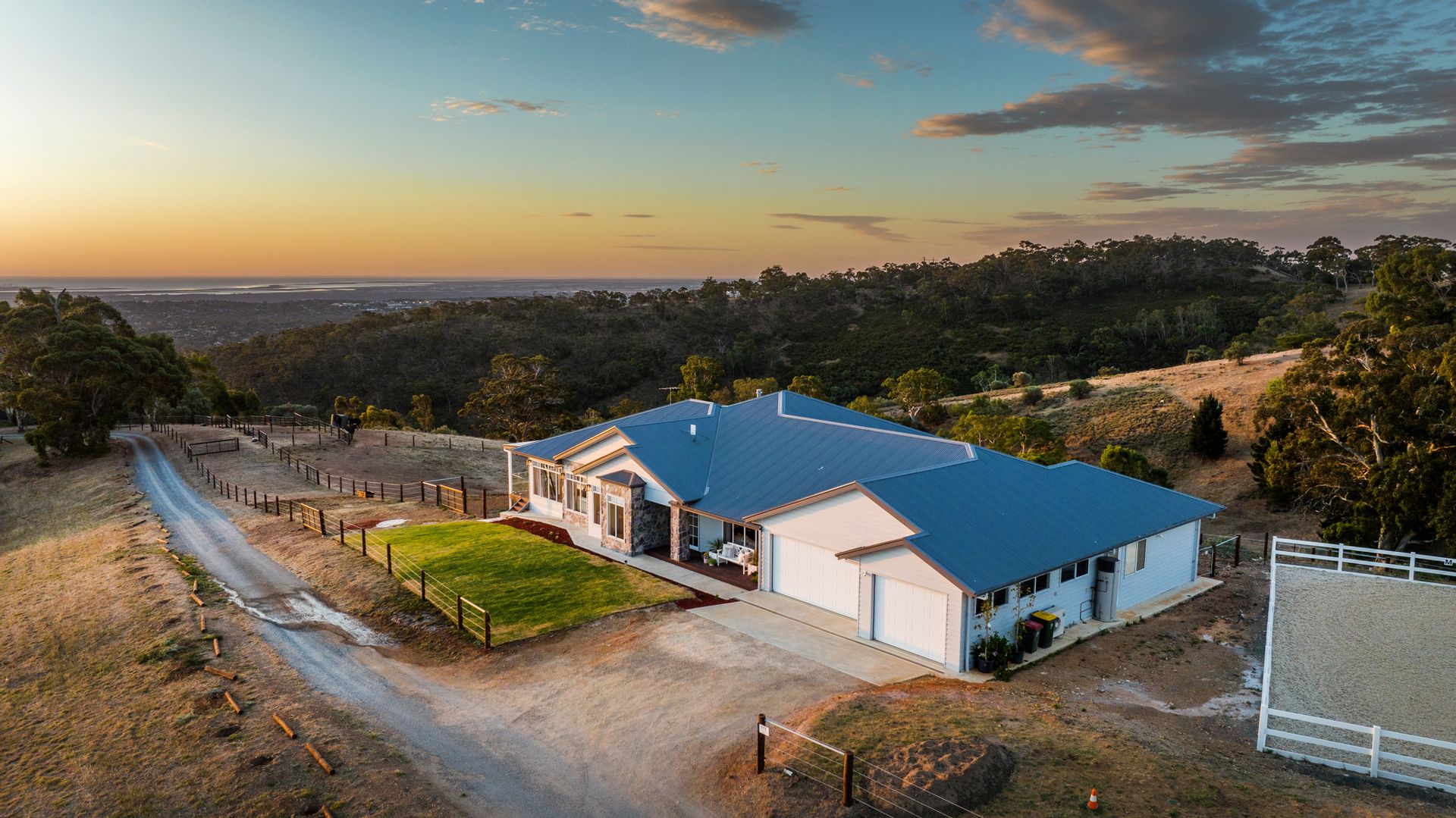 The luxurious four-bedroom home, constructed in 2022, offers breath taking views that stretch from the Adelaide CBD to the Port and Semaphore. The property's elevated position ensures a sense of tranquillity and privacy, making it feel as though you are on top of the world. The wraparound deck provides the perfect spot for enjoying panoramic views and the natural beauty surrounding the property.