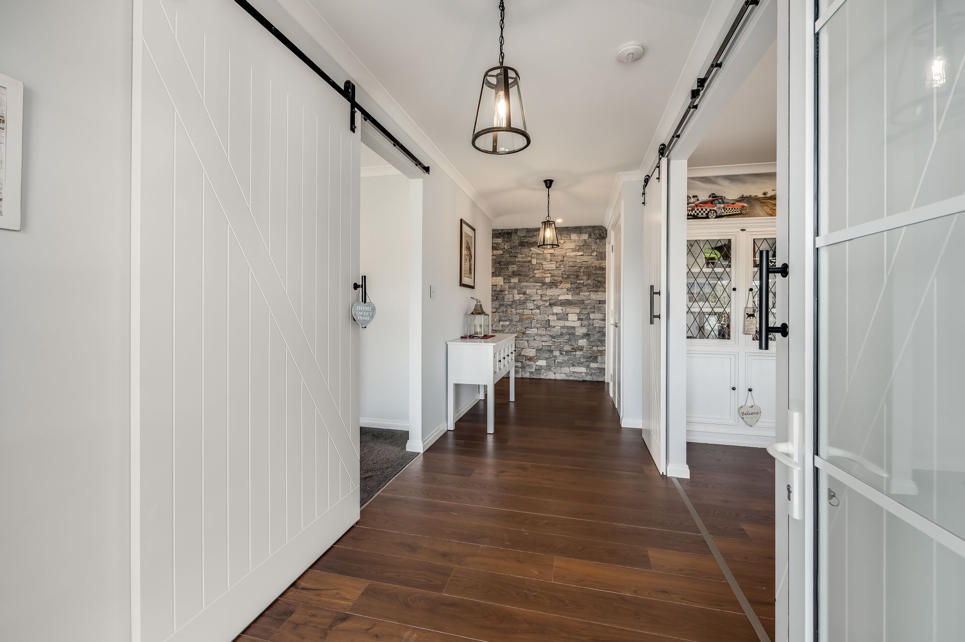 • Three car garage with double and single auto roller doors