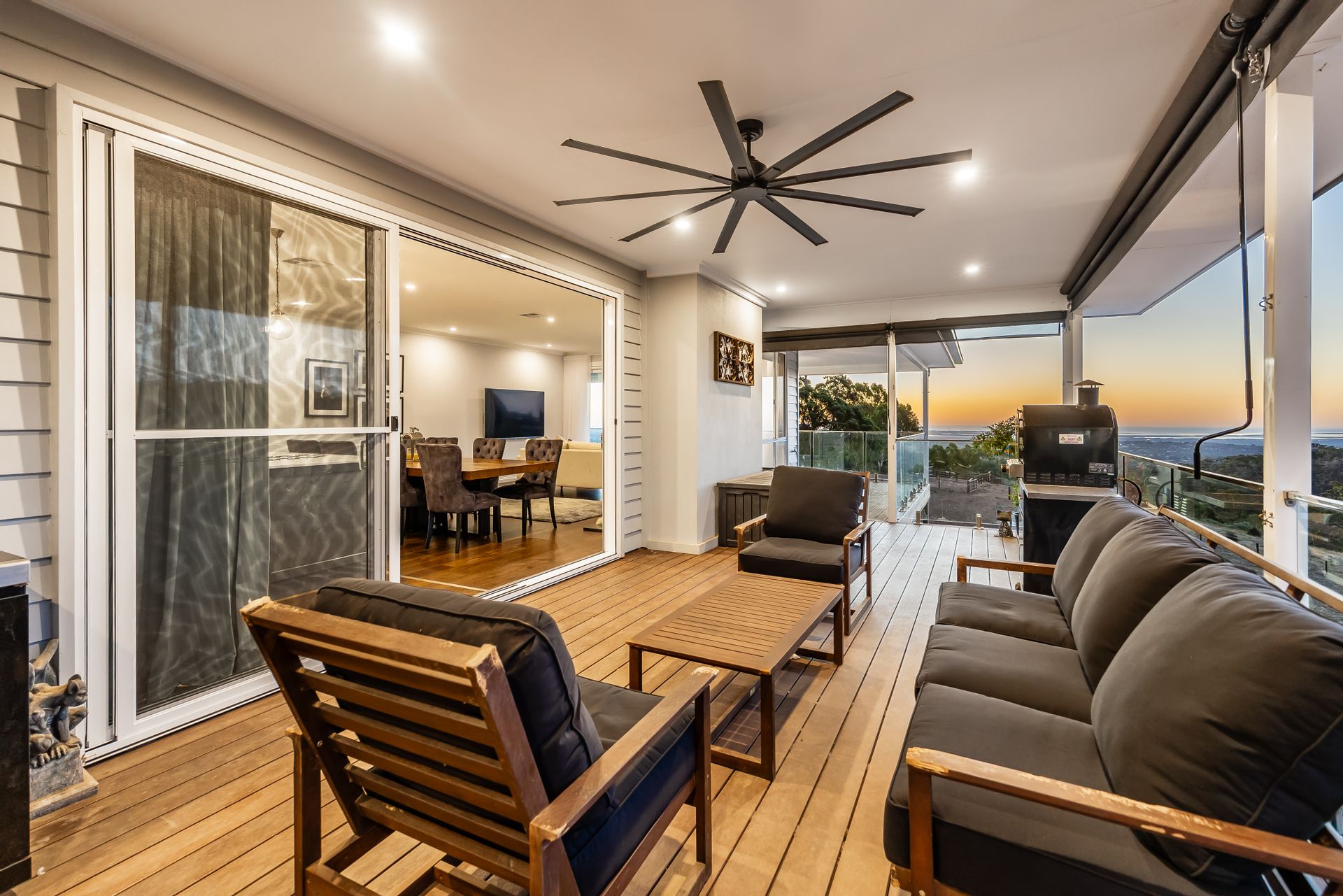 • Large 14.5 x 3.8m undercover decked balcony alfresco
