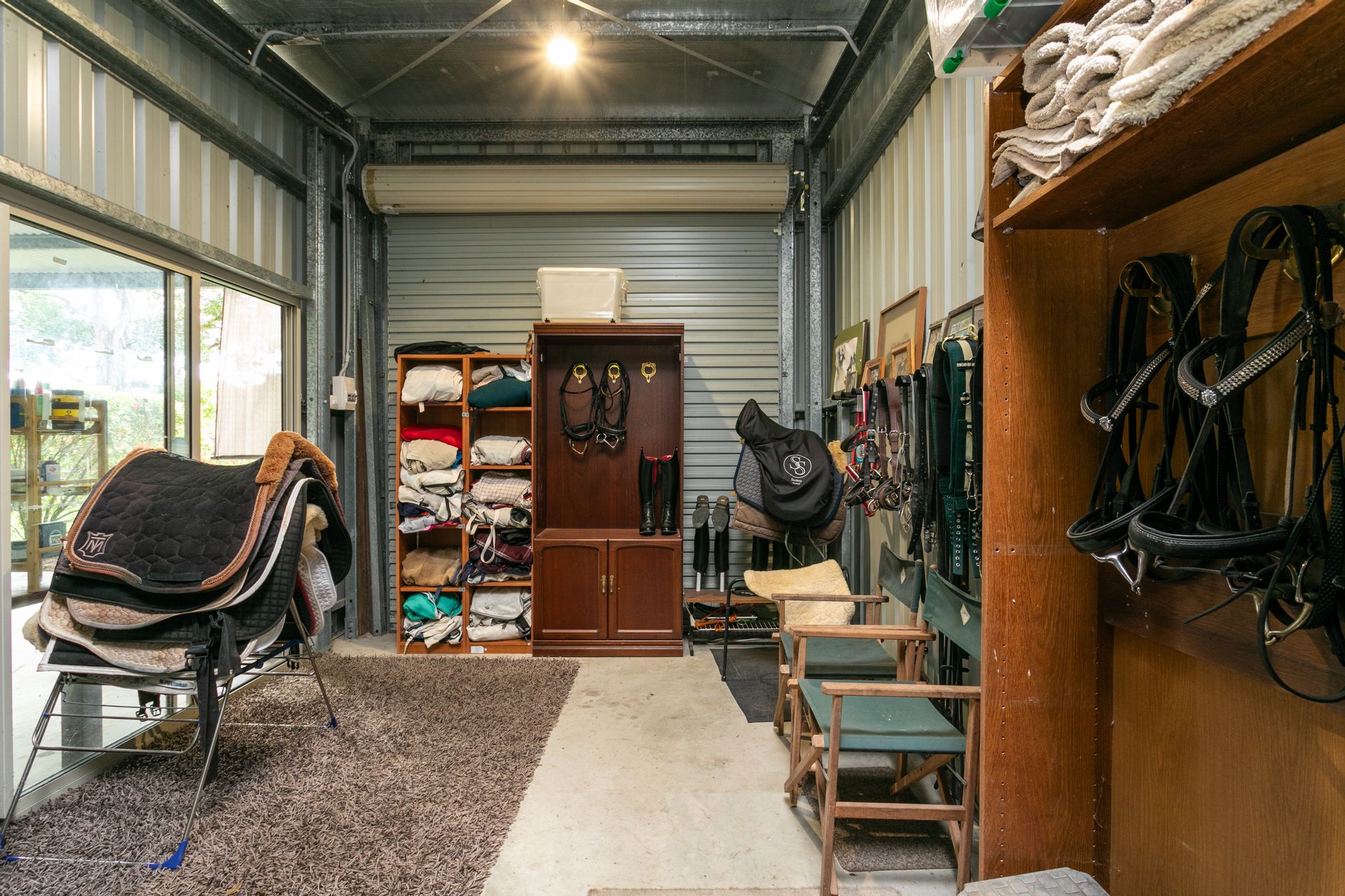 Infrastructure on the property is extensive - including fully boundary fencing; paddock fencing (4 paddocks); electronic front entry gate; fully self-contained and approved liveable studio with double lockup garage; double carport with enclosed workshop (next to house); shade structure; feed storage shed and stables; 3-bay shed with stables, tack room and extra height for horse float; multiple water tanks; bore; and security cameras.