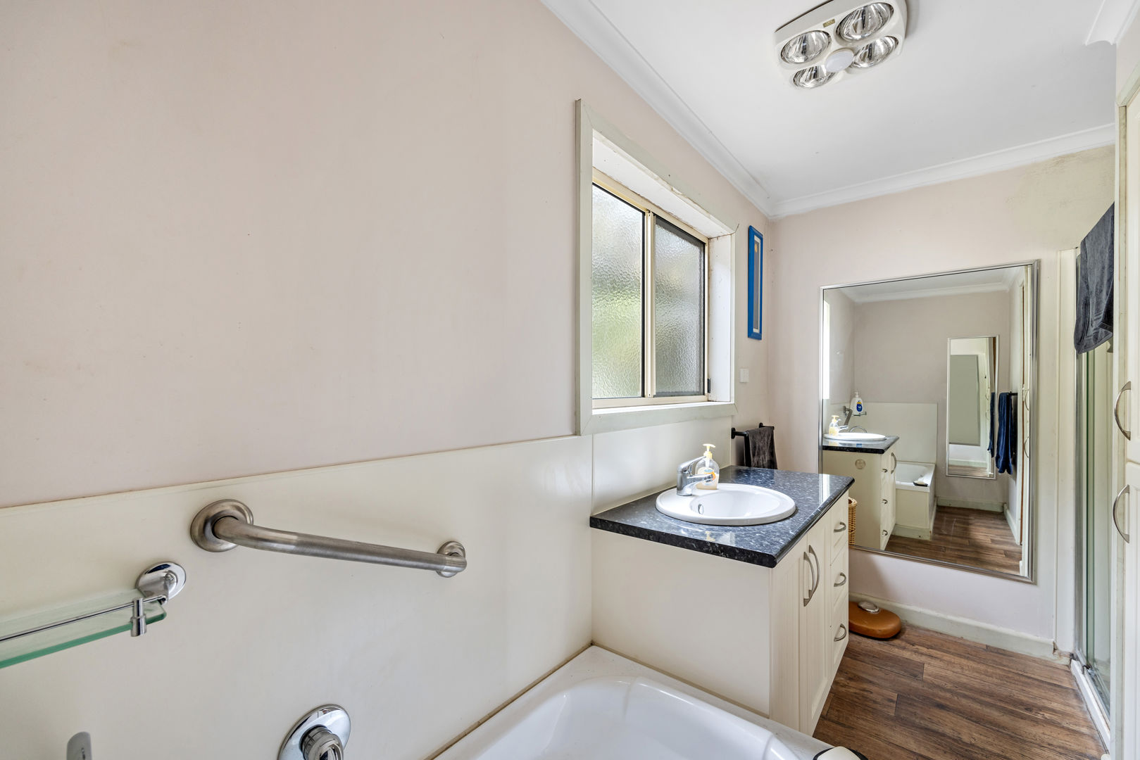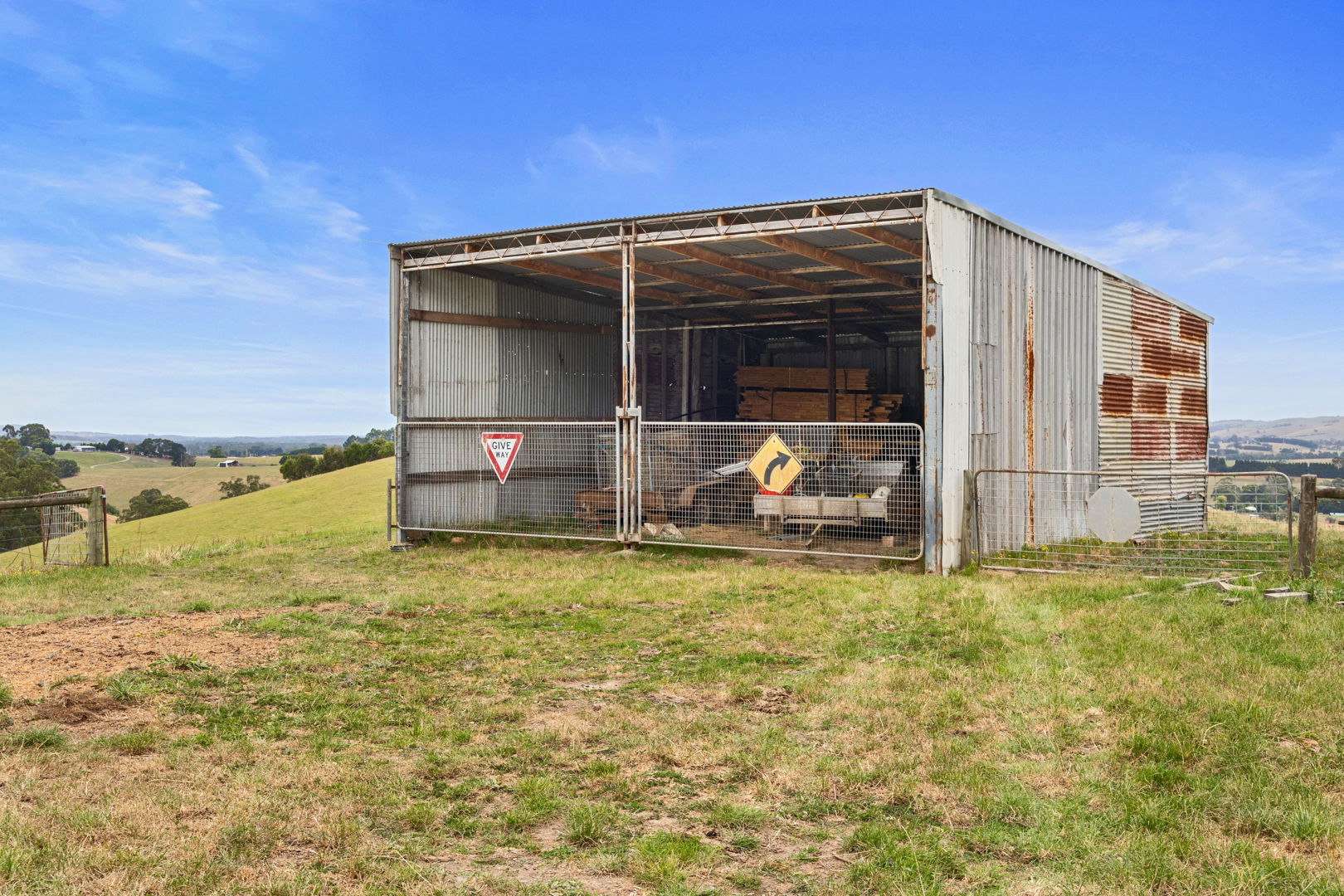 The main homestead is a well cared for weatherboard home with three bedrooms, renovated bathroom & laundry, good sized living area with reverse cycle A/C, formal dining room with attractive ceiling roses & wood heater, original kitchen, double carport plus single garage. This home has commanding views over farmland and beyond, as well as gorgeous gardens and surroundings providing a feel of pure tranquility.