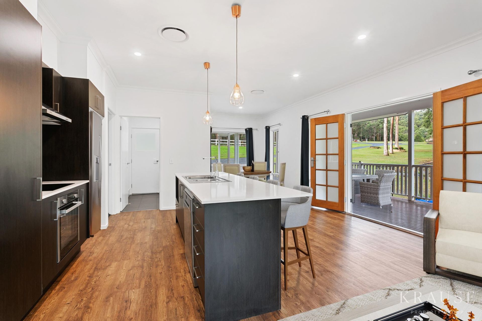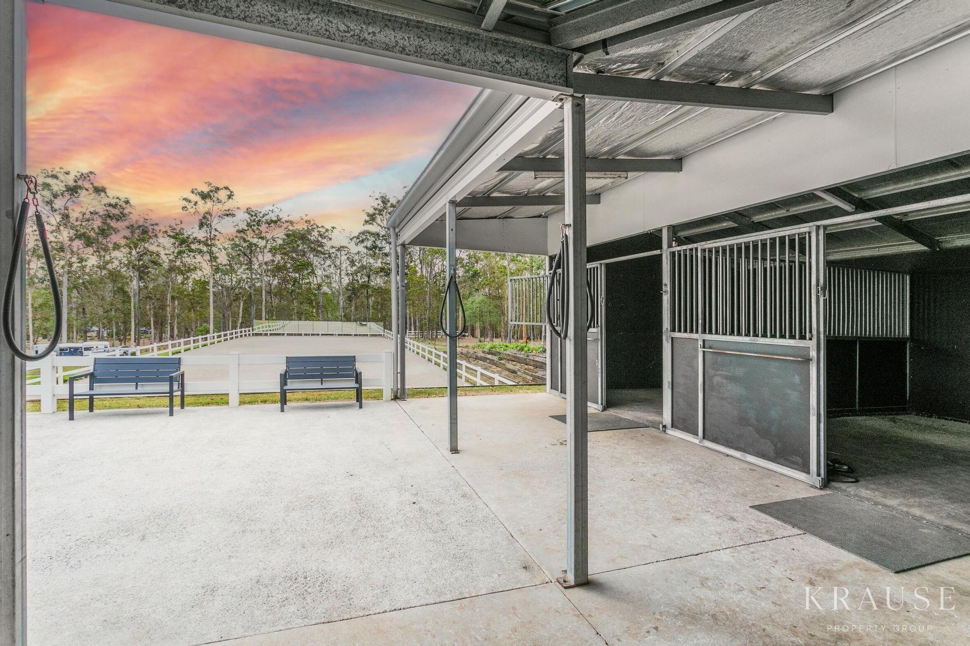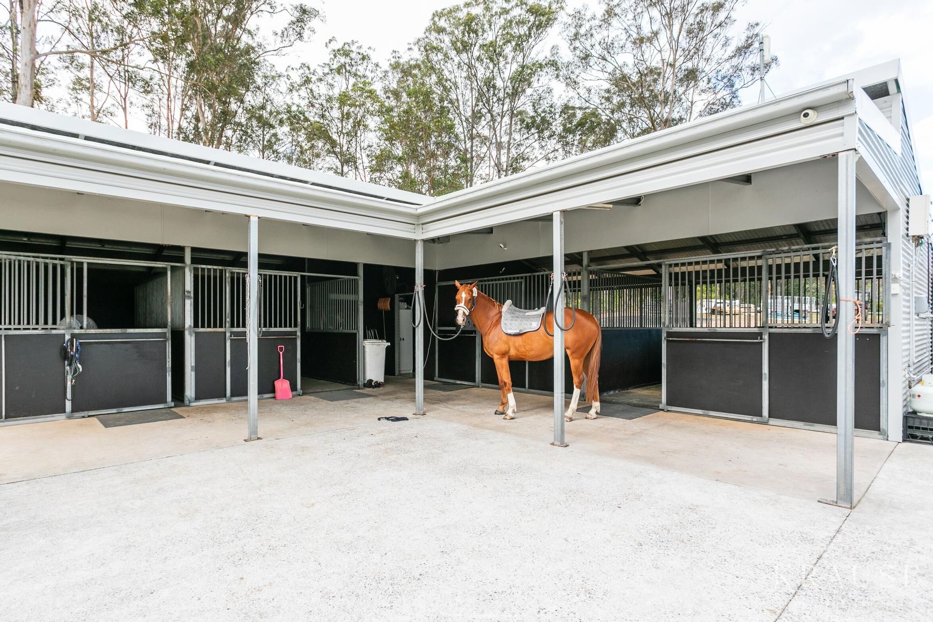 The property itself is outstanding in terms of presentation, the calibre of infrastructure, and overall aesthetics. The gardens have been newly landscaped with automatic irrigation and comprehensive planting of lily pillies around the border for privacy; over 750 plants in total have been planted across the acreage, and there are three dams and a bore supplying abundant water. With improved pastures, 9 x fenced paddocks with graveity-fed water troughs, 6 x horse shelters, 4 x stables with stable comfort flooring imported from Canada, automatic water, automated lighting and fans. Wash bay with a new gas hot water system - separate tack and feed room which has been fully redesigned and 60x20m sand arena with automatic irrigation operated by phone. This is a premium horse property offering agistment possibilities for income stream, and most paddocks can accommodate two horses. Other infrastructure on the property includes gated entry, sheds with multiple bays and water tanks, new shipping container/office with bitumen pad under, new electric paddock fencing, dog fencing off main residence, and new lights on front fence on automatic solar system. Recently a large section of land close to 5 acres was cleared around the dams on the eastern boundary which would be a perfect place to extend pastures, create another area for another dwelling, short stay cabins (stca) , a majestic bush walk retreat for relaxing morning and evening strolls with kids and pets or an inspirational place for organised events such as parties and weddings etc.