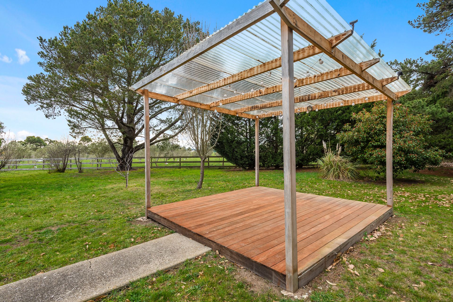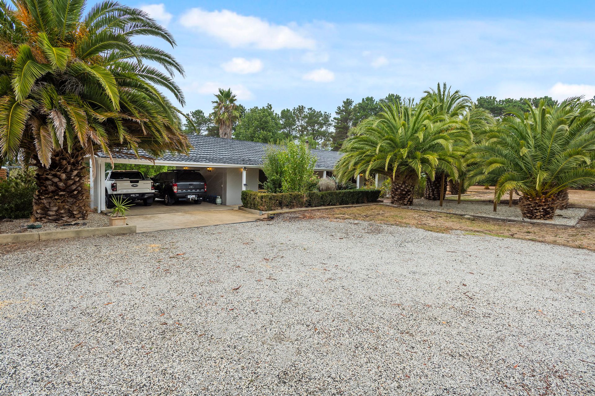 The grounds of this property are where you will find all of the charm. To the front of the house is an undercover seating area, surrounded by large palm trees and overlooking the property. In the rear an undercover alfresco area perfect for barbecuing and entertaining, with a walk way leading to a raised and covered stage area, that is perfect for entertaining with guests.