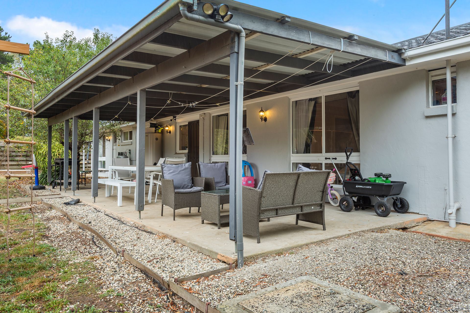 The main house, studio and shed has been freshly painted and is ready for a new family to enjoy. Opening the front door you will find a spacious living area, complete with large windows to capture gorgeous views while staying warm with the woodfire heater. Off the living area is the master bedroom with walk in robe, and ensuite, overlooking the rear yard which will have you seeing every sunrise. The remaining bedrooms in the main house are all carpeted and have built in robes, sharing chic main bathroom with stone-look vanity, shower and bath, and separate toilet.