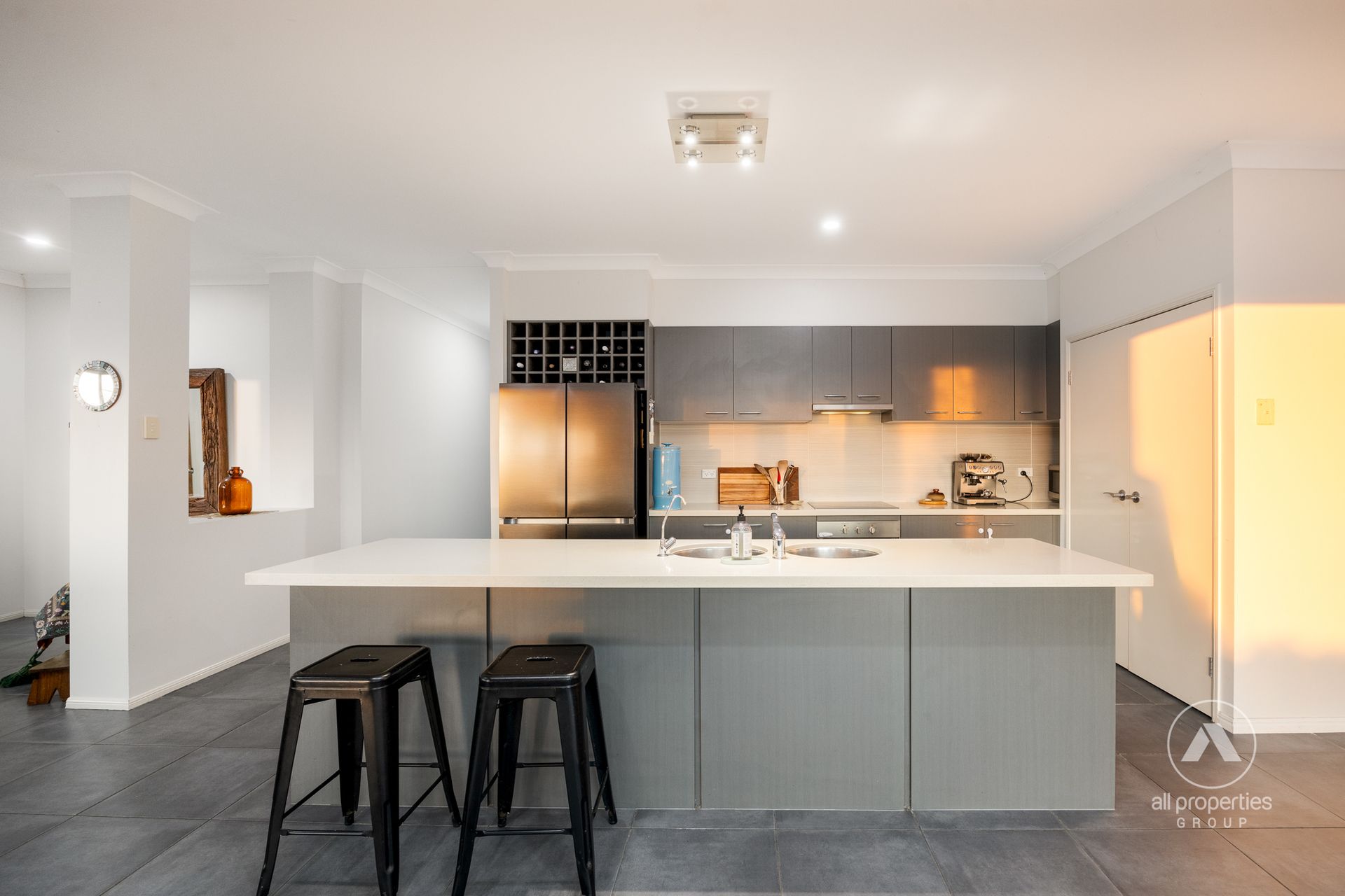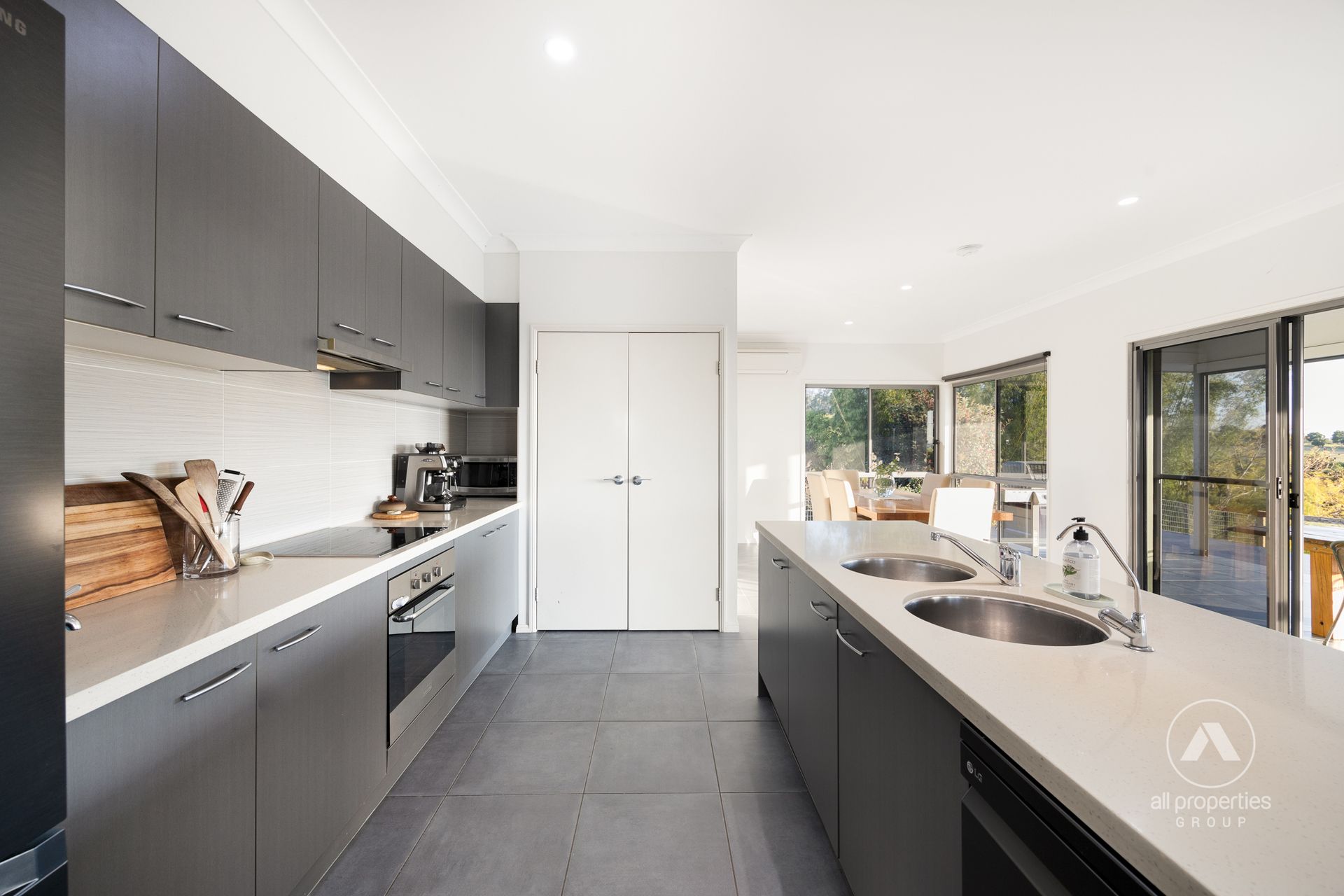 - Kitchen: Gourmet kitchen with 40mm Caesarstone benchtops + premium cooking appliances + LG dishwasher + dual sink + ample cupboard & pantry storage